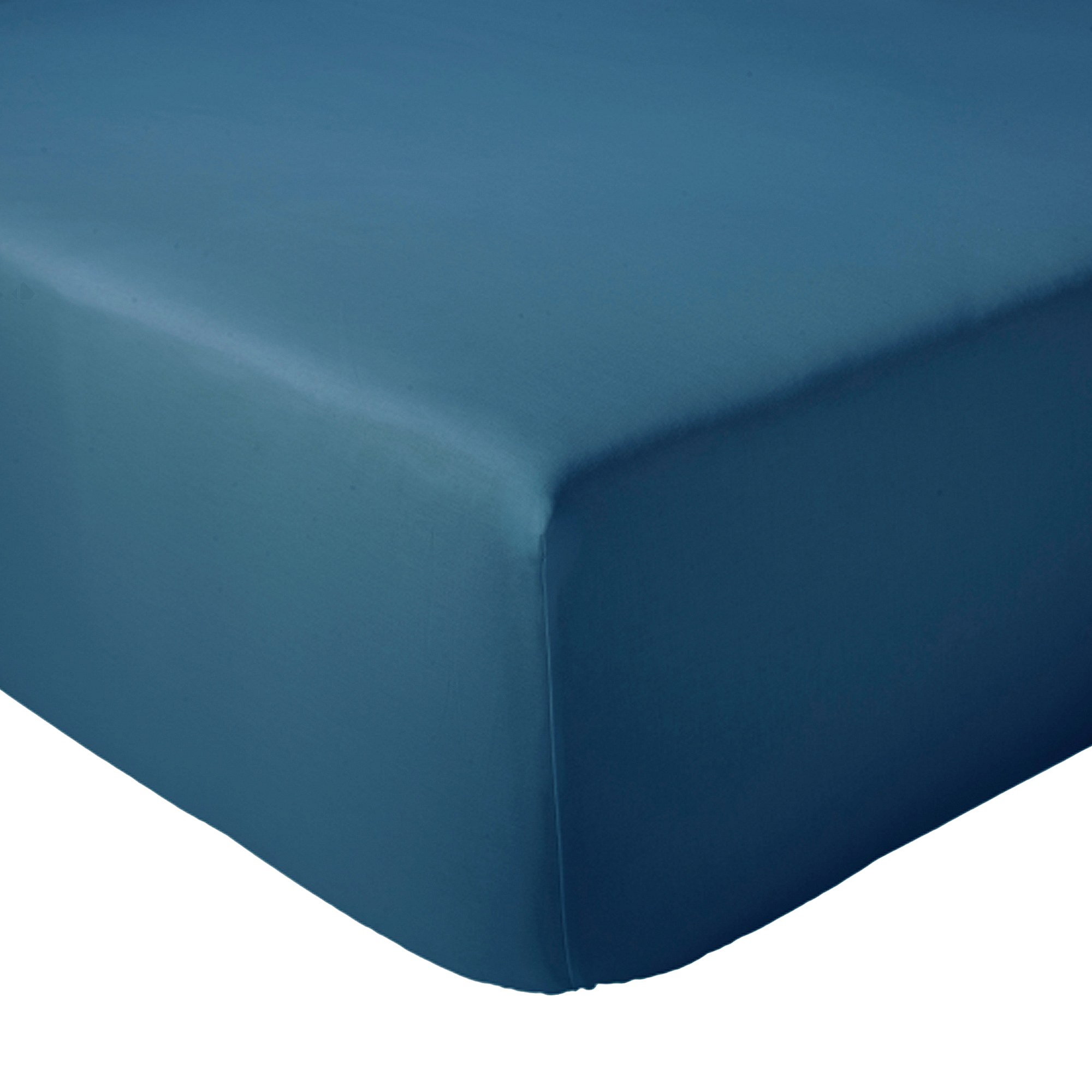 Drap housse 180x200 cm bonnet 30 cm percale de coton PASSION PERCALE bleu Cobalt