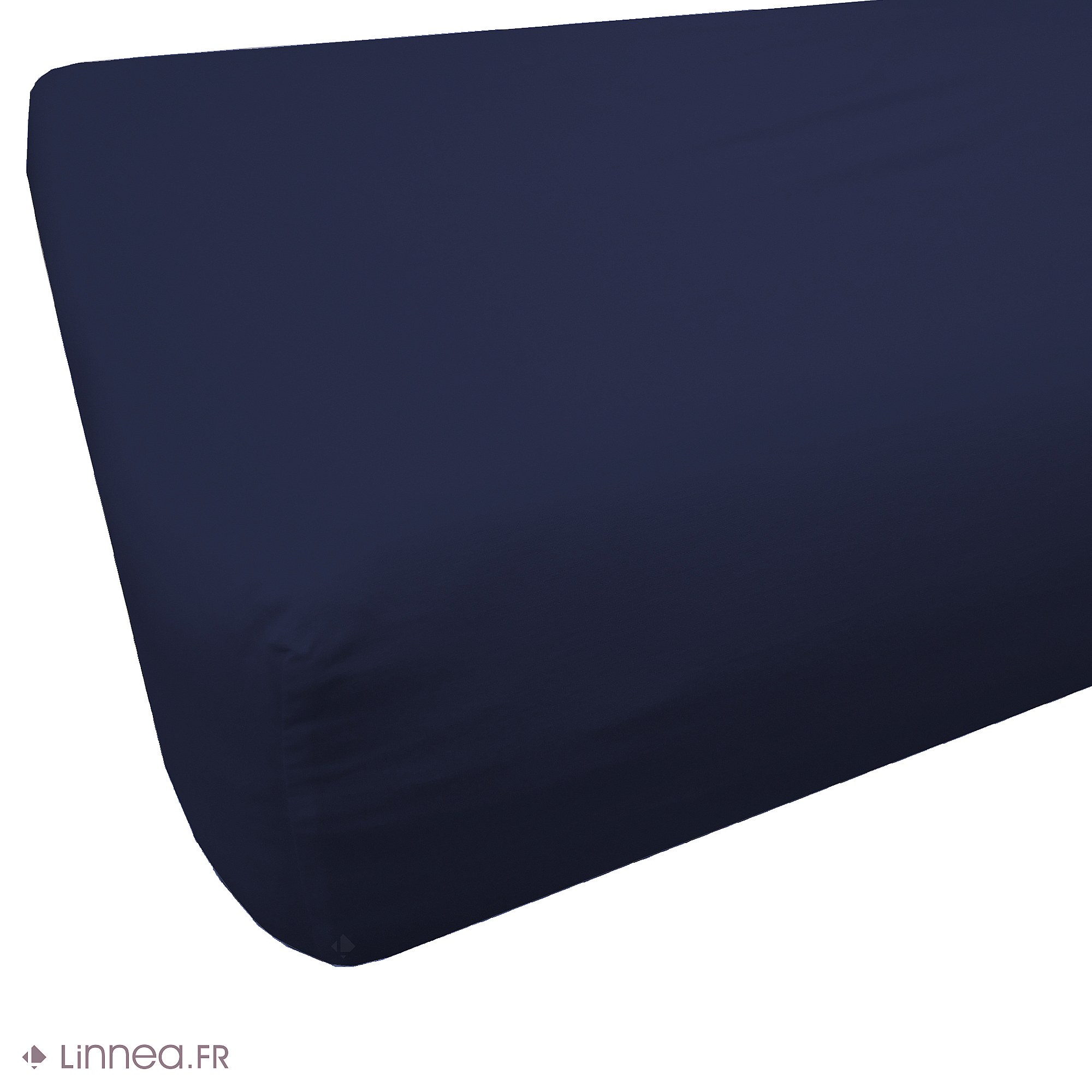 Drap housse 90x190 cm polyester microfibre LAGO bleu marine bonnet 28 cm