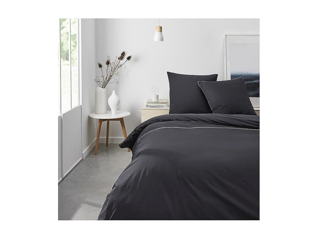 Drap housse 100% Coton 57 fils Anthracite Taille 160 x 200 cm