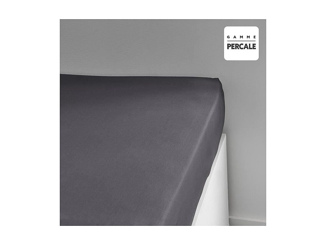 Drap housse en percale de coton "Prestige" - Gris acier - 140 x 200 cm