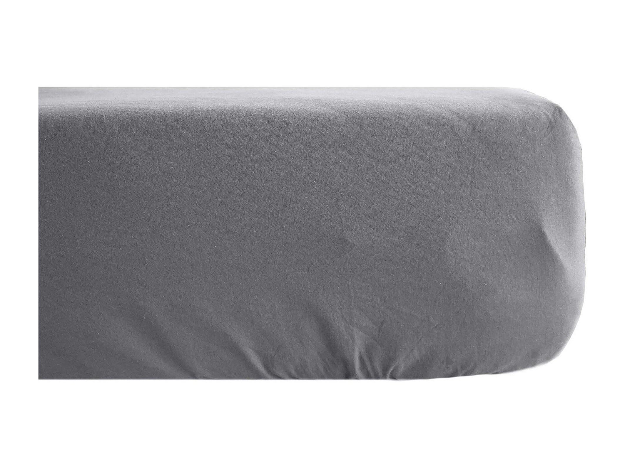 Drap housse 160x200 cm pur coton lavé PALACE gris acier