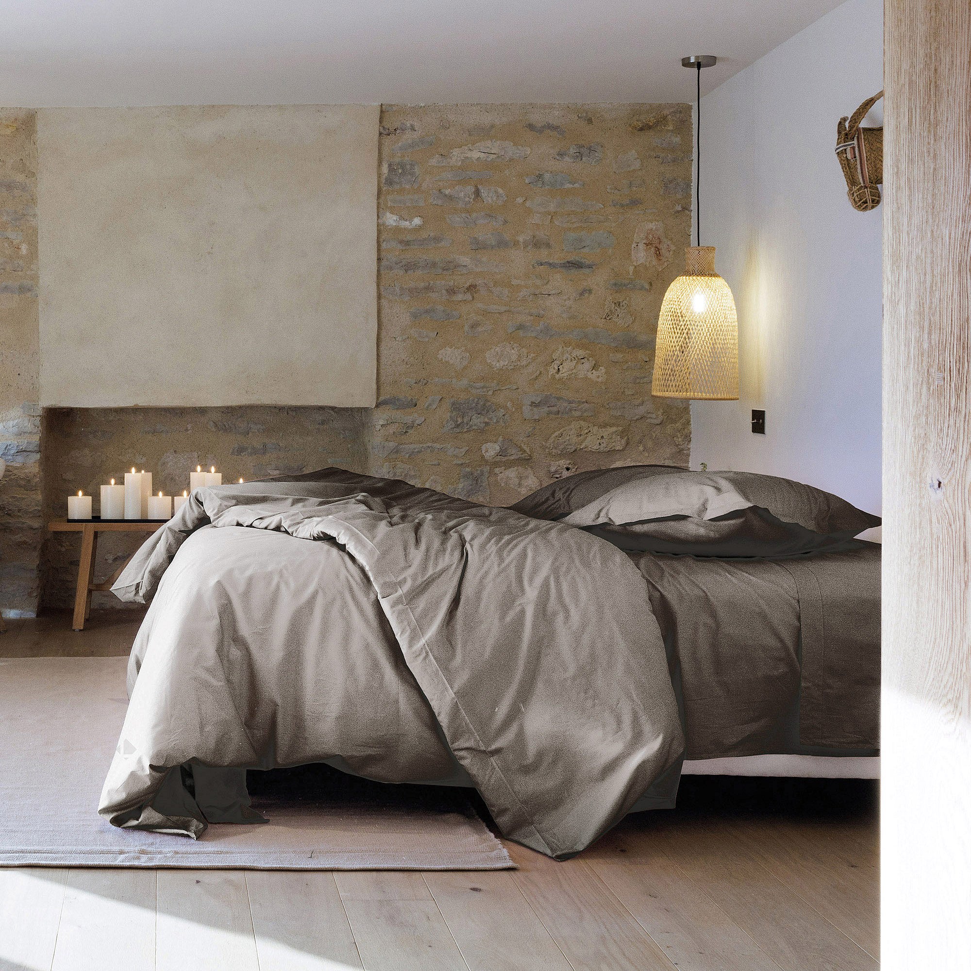 Drap housse uni 160x200 cm percale MANOIR gris Cendre bonnet 40