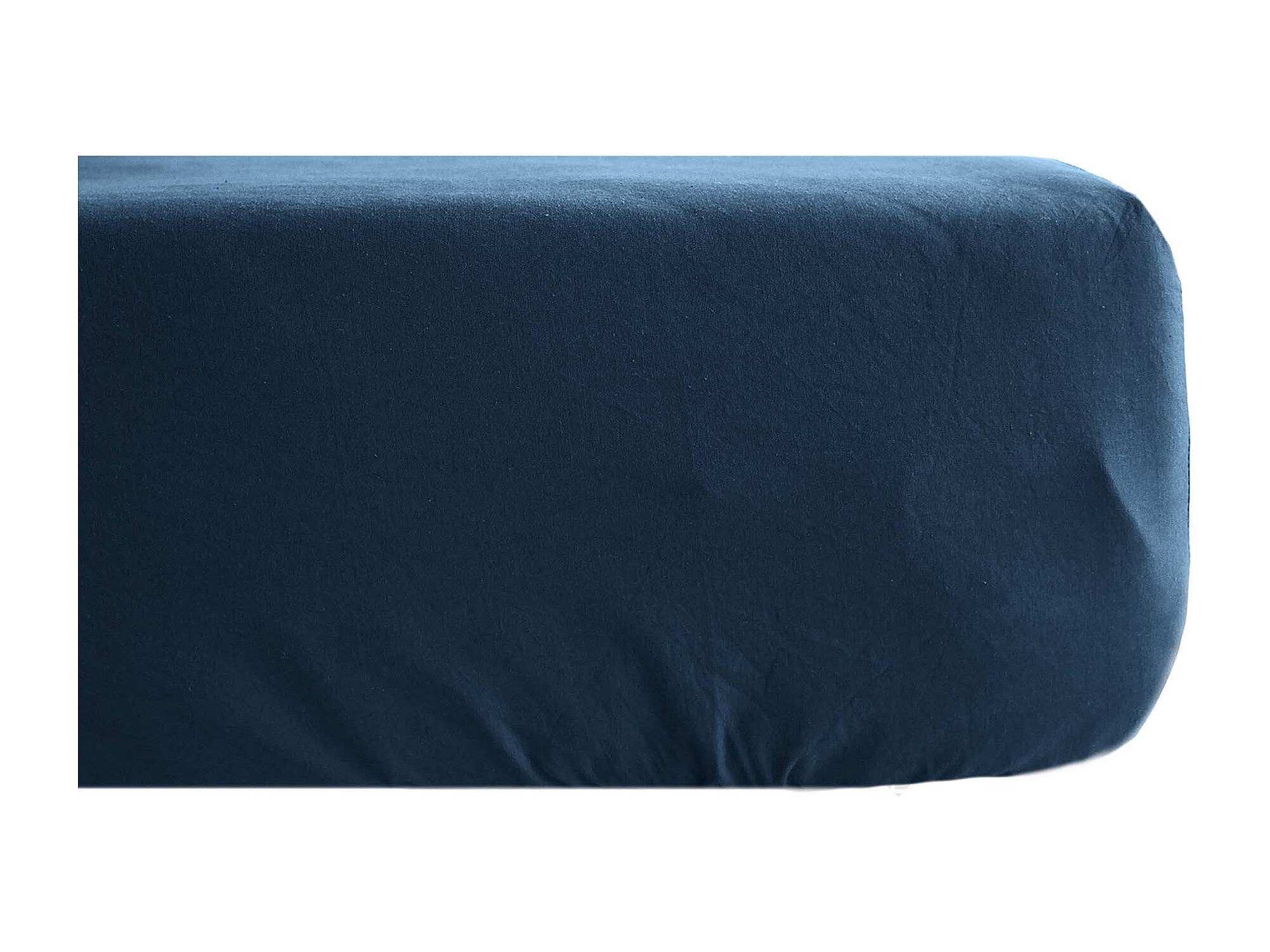 Drap housse uni 90x190 cm percale MANOIR bleu Marine bonnet 35