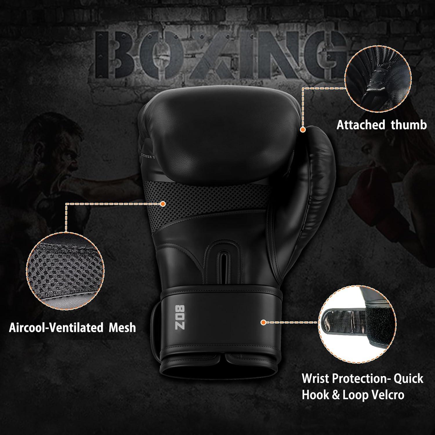 Dripex Gants de Boxe 12 oz Gants dEntranement de Boxe PU Cuir Gants Sac de Frappe Homme Femme Boxing Gloves Professionnels pour Ar