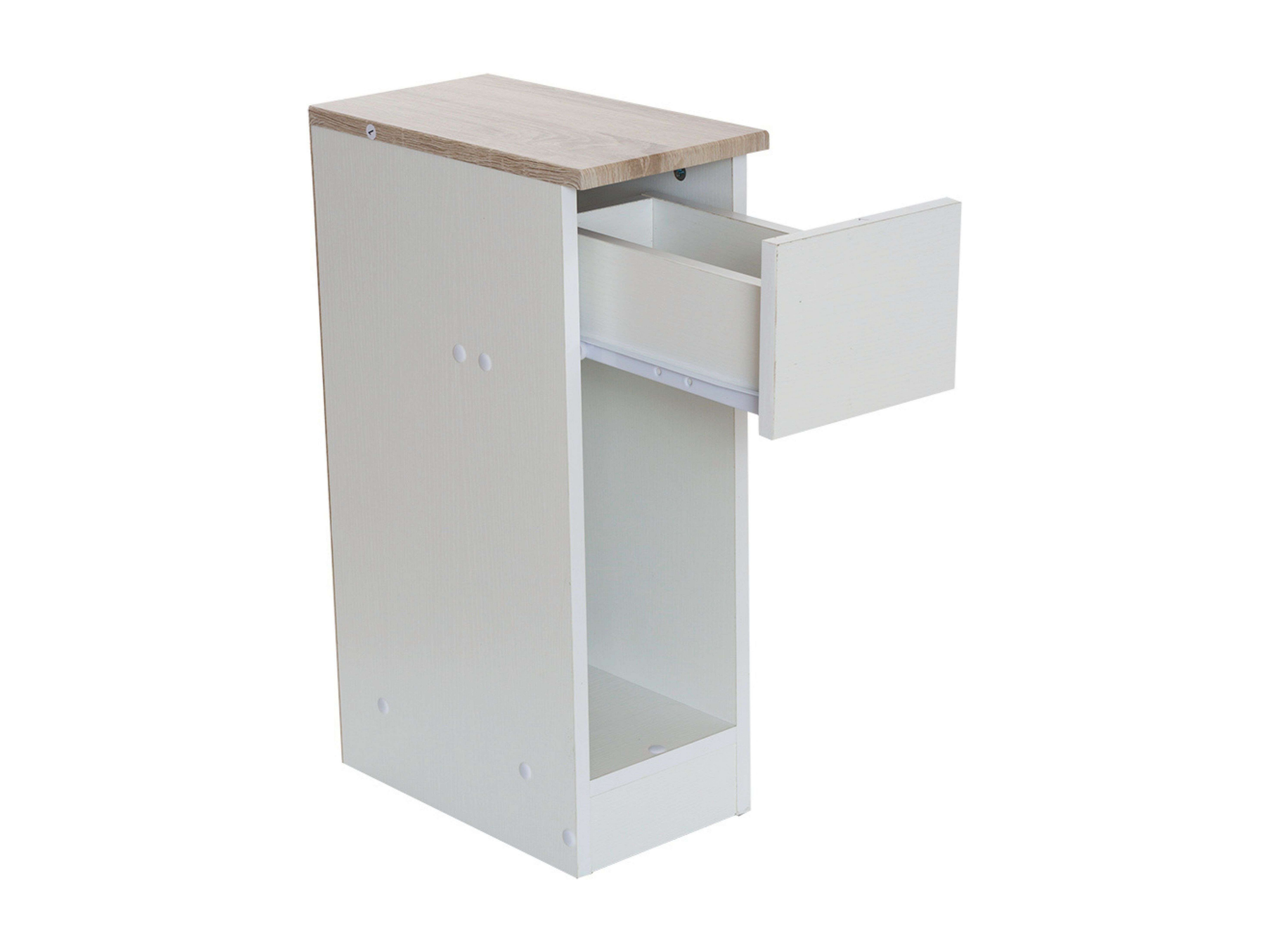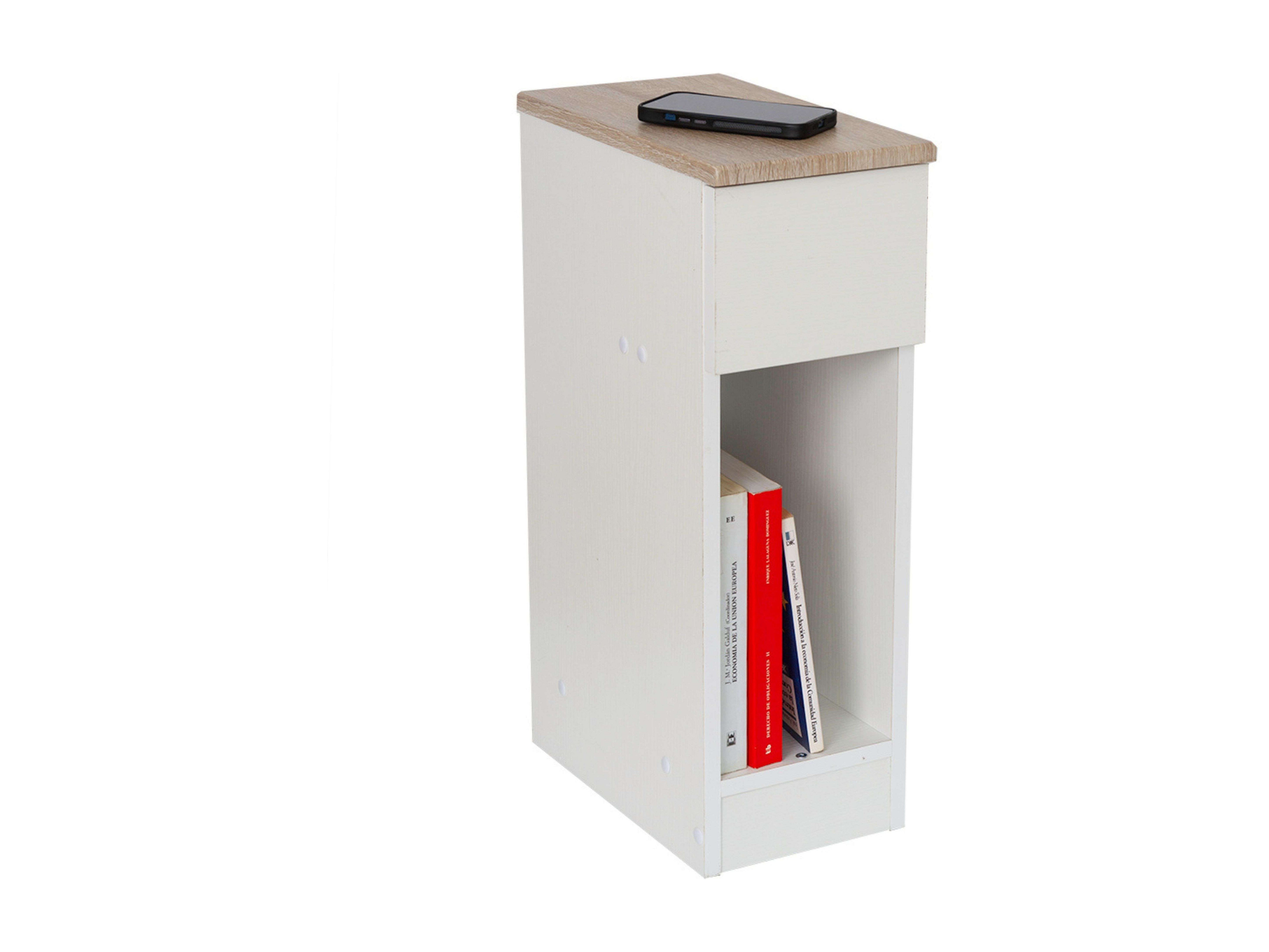 DUPI Mesita de Noche Estrecha Slim para Espacios reducidos. Optimiza el Almacenamiento y Ofrece funcionalidad. (Blanco/Taupe)