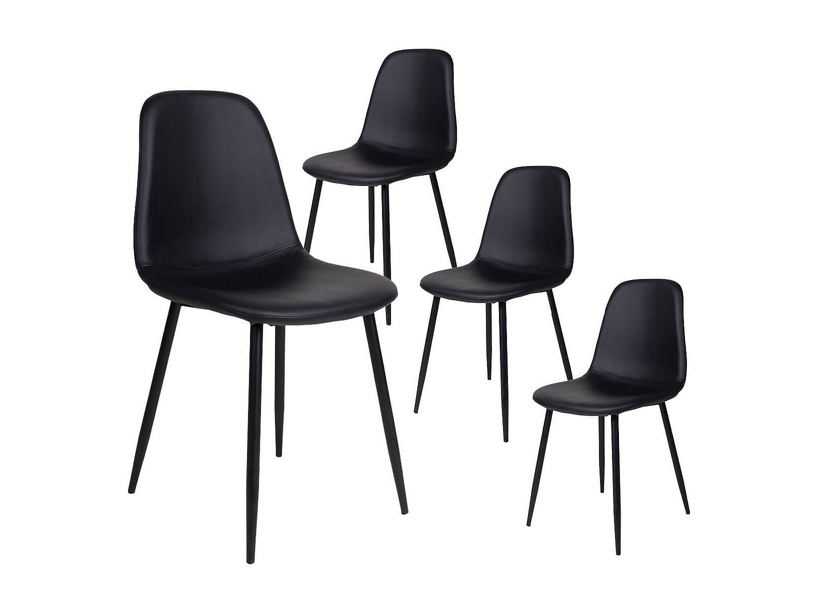 DYVIK - Lot de 4 Chaises Simili Noir et Piétement Acier Noir