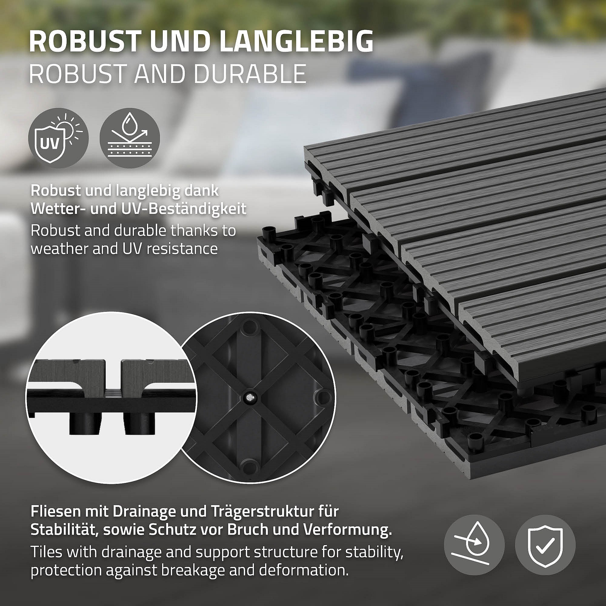 11x Carreaux de terrasse WPC 30x30cm carrelage revêtement de sol anthracite ECD Germany