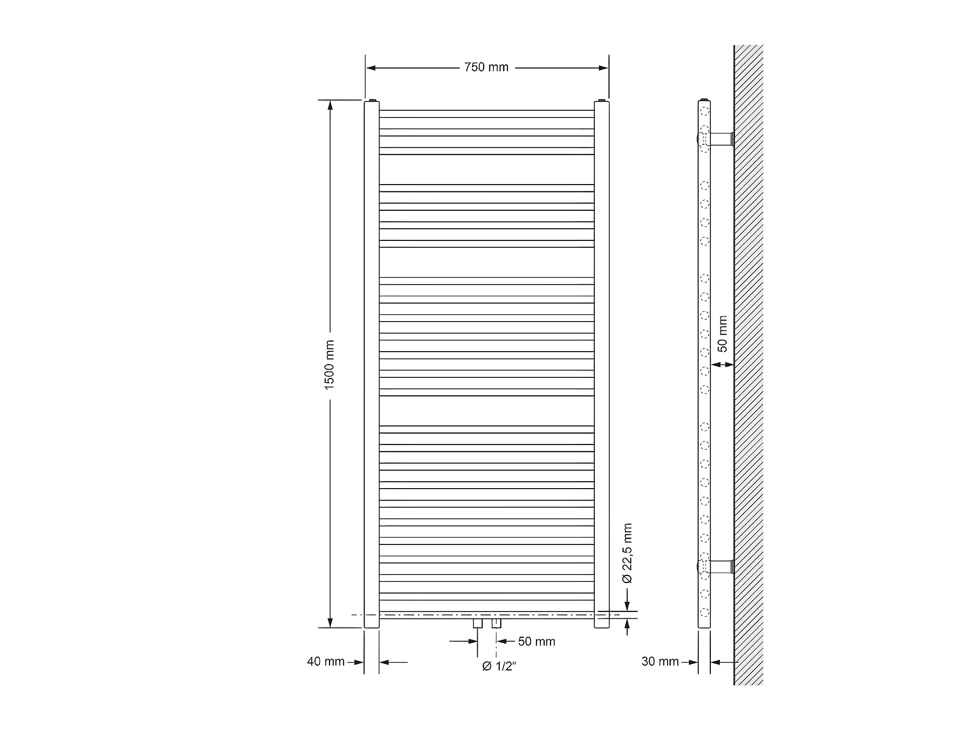 ECD Germany Radiateur Design Sahara Non Électrique - 750 x 1500 mm - Anthracite - Connexion Central - sans Kit de Raccordement - Forme Courbé