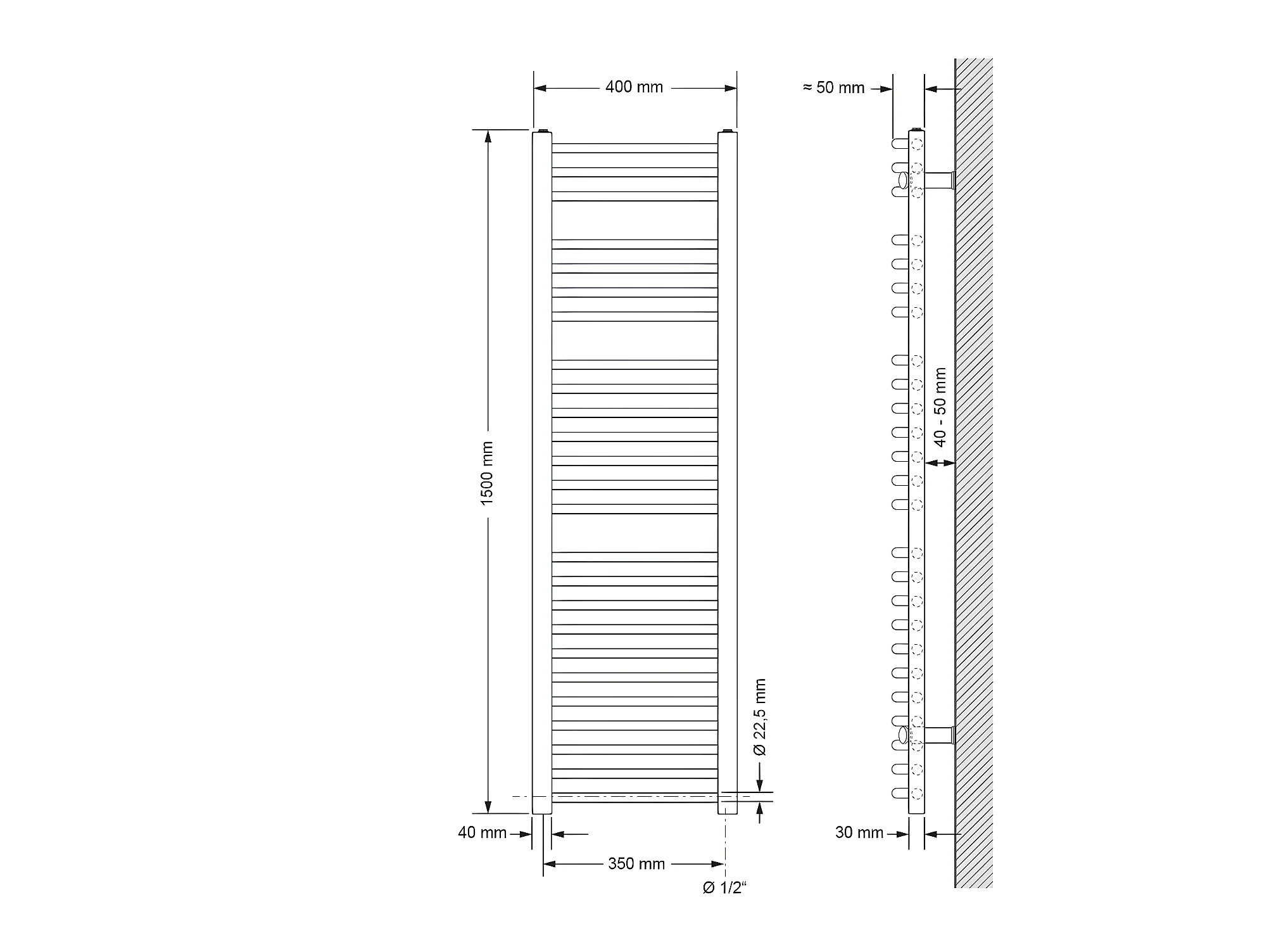 Radiateur de salle de bain Sahara Raccord latéral sèche-serviettes Blanc 40x150cm