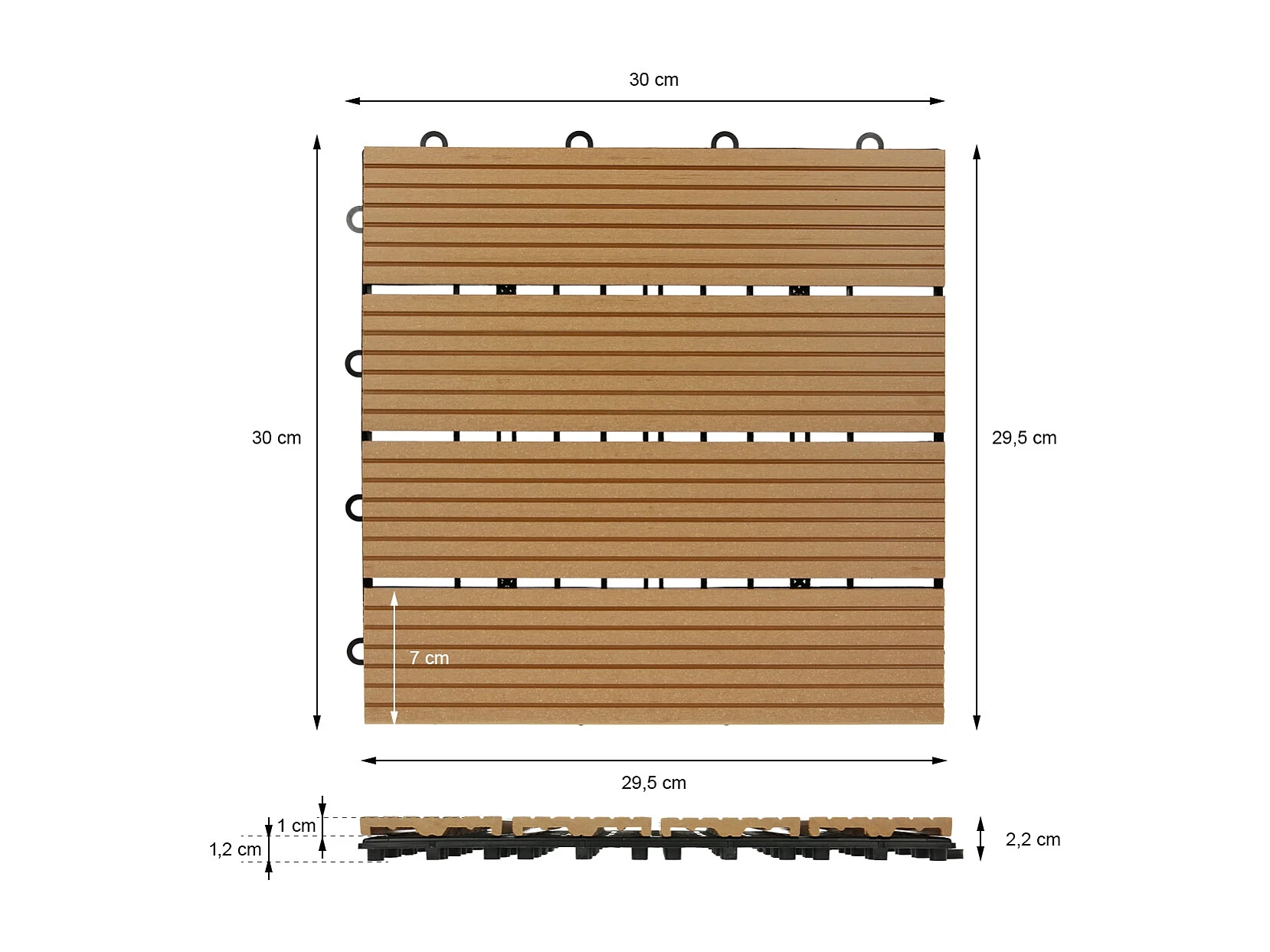 WPC Carreaux 30x30 cm - 33 Pièces par 3m² avec Aspect de Bois Teak ECD Germany