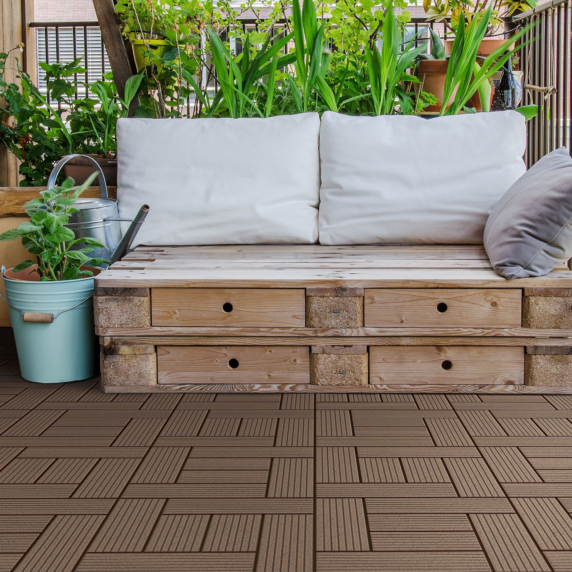 WPC carreaux de sol 30x30 cm 4m² mosaïque pour jardin piscine patio marron clair