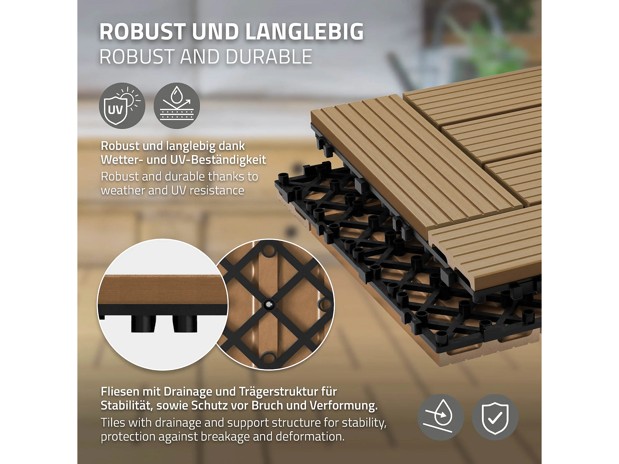 ECD Germany WPC Carreaux de Terrasse 30x30 cm - 33 Pièces par 3m² - avec Aspect Mosaïque - Teck -