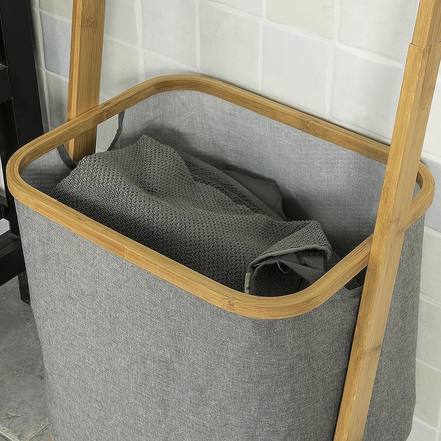 Panier à linge d'angle en bambou - H60 cm