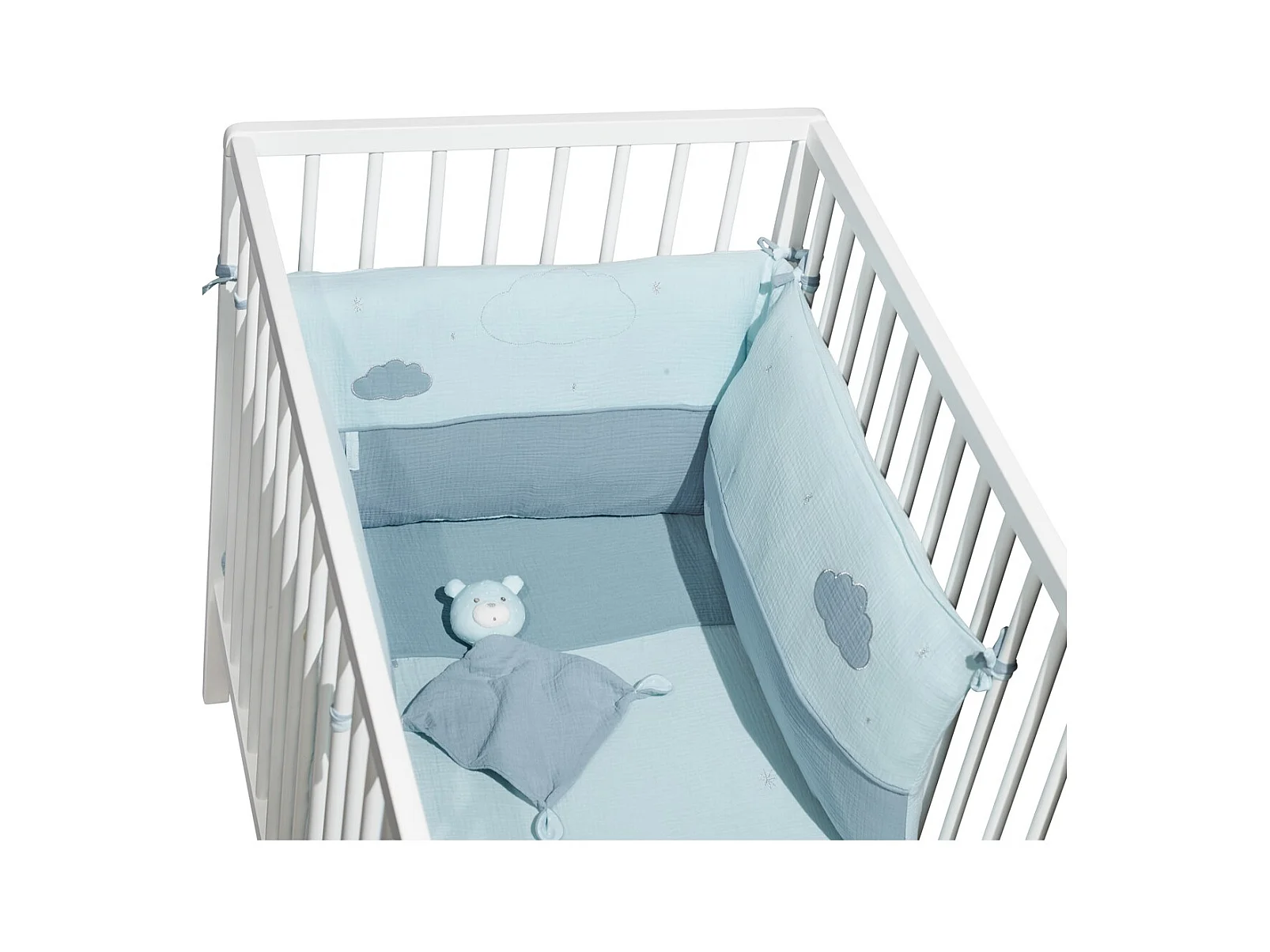 Edredon lit bébé en coton bleu LAZARE - Sauthon