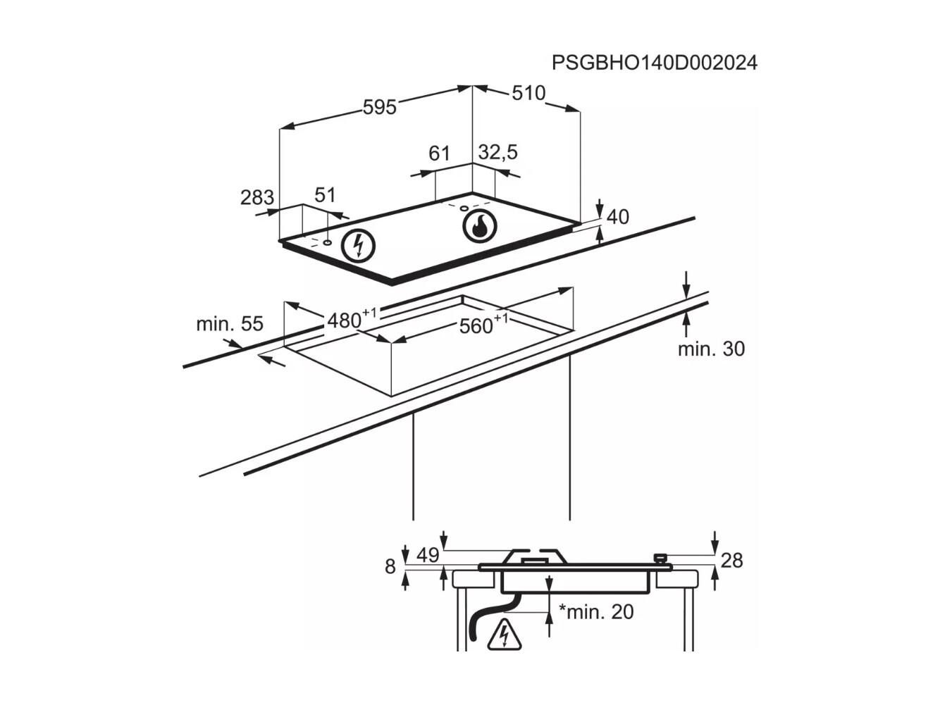 Electrolux Table de cuisson gaz 60cm 4 feux - KGS6424K
