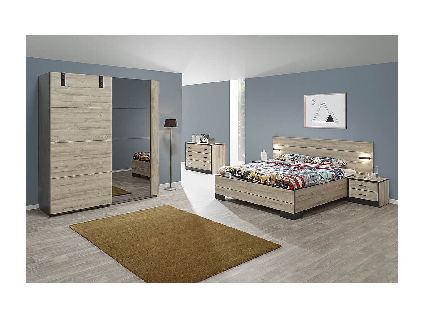 ELEOS - Chambre Complète 140x200cm avec Armoire 188cm