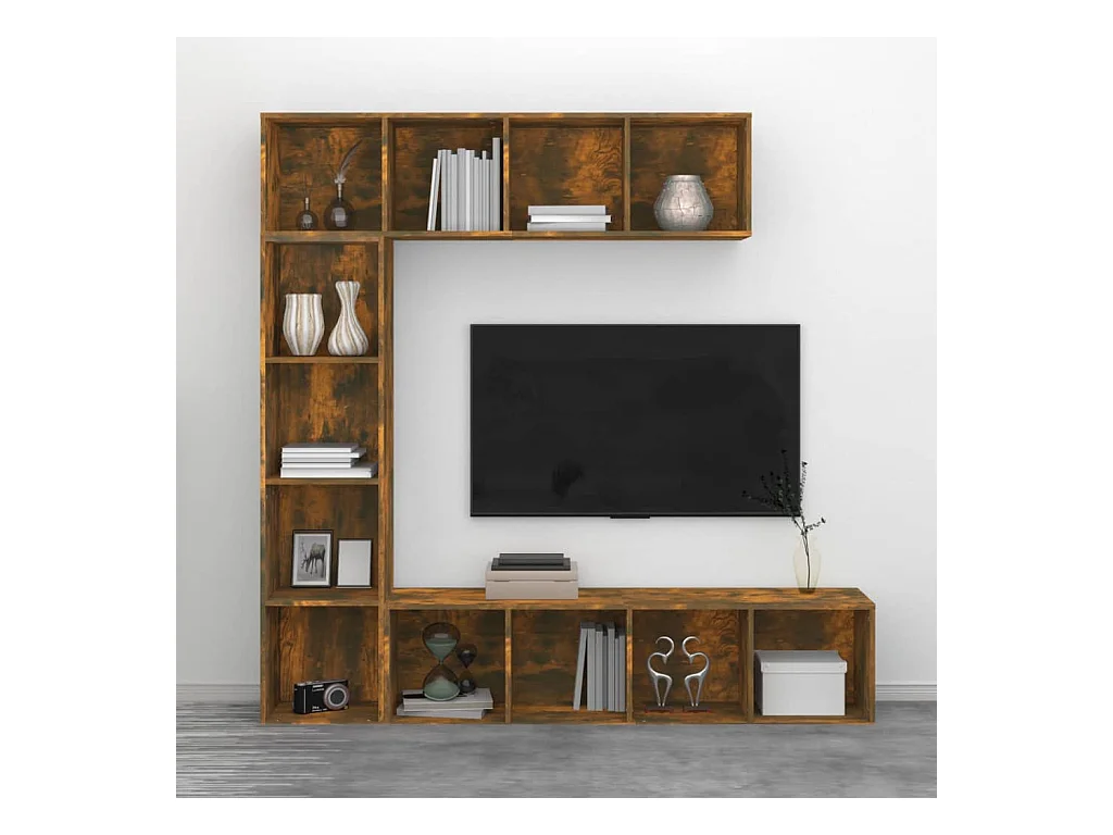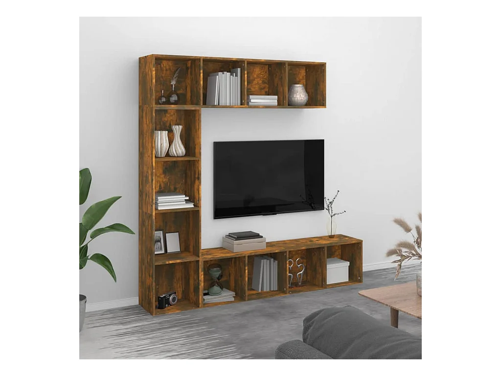 Elida Ensemble bibliothèque/meuble TV 3 pcs Chêne fumé 180x30x180 cm
