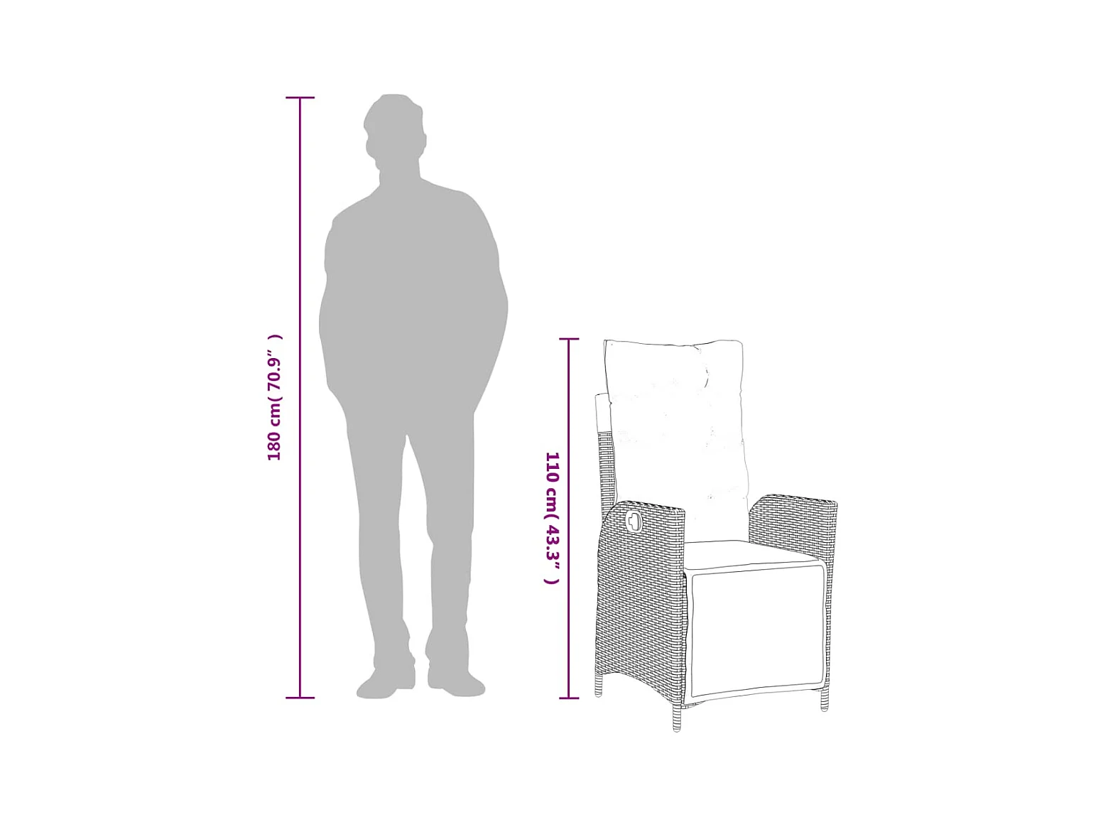 Elviraa Ensemble à manger de jardin et coussins 7 pcs gris rotin