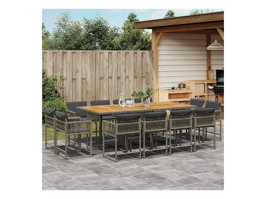 Emilia Ensemble à manger de jardin coussins 13 pcs gris résine tressée