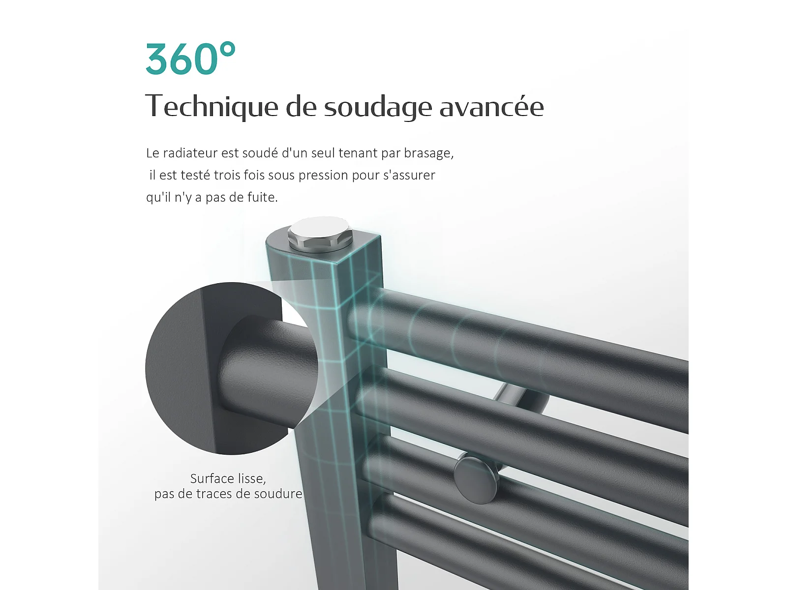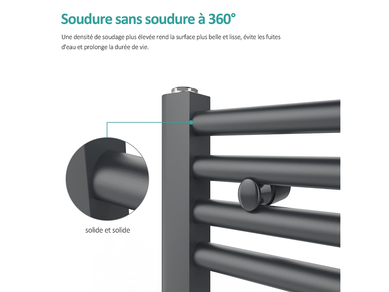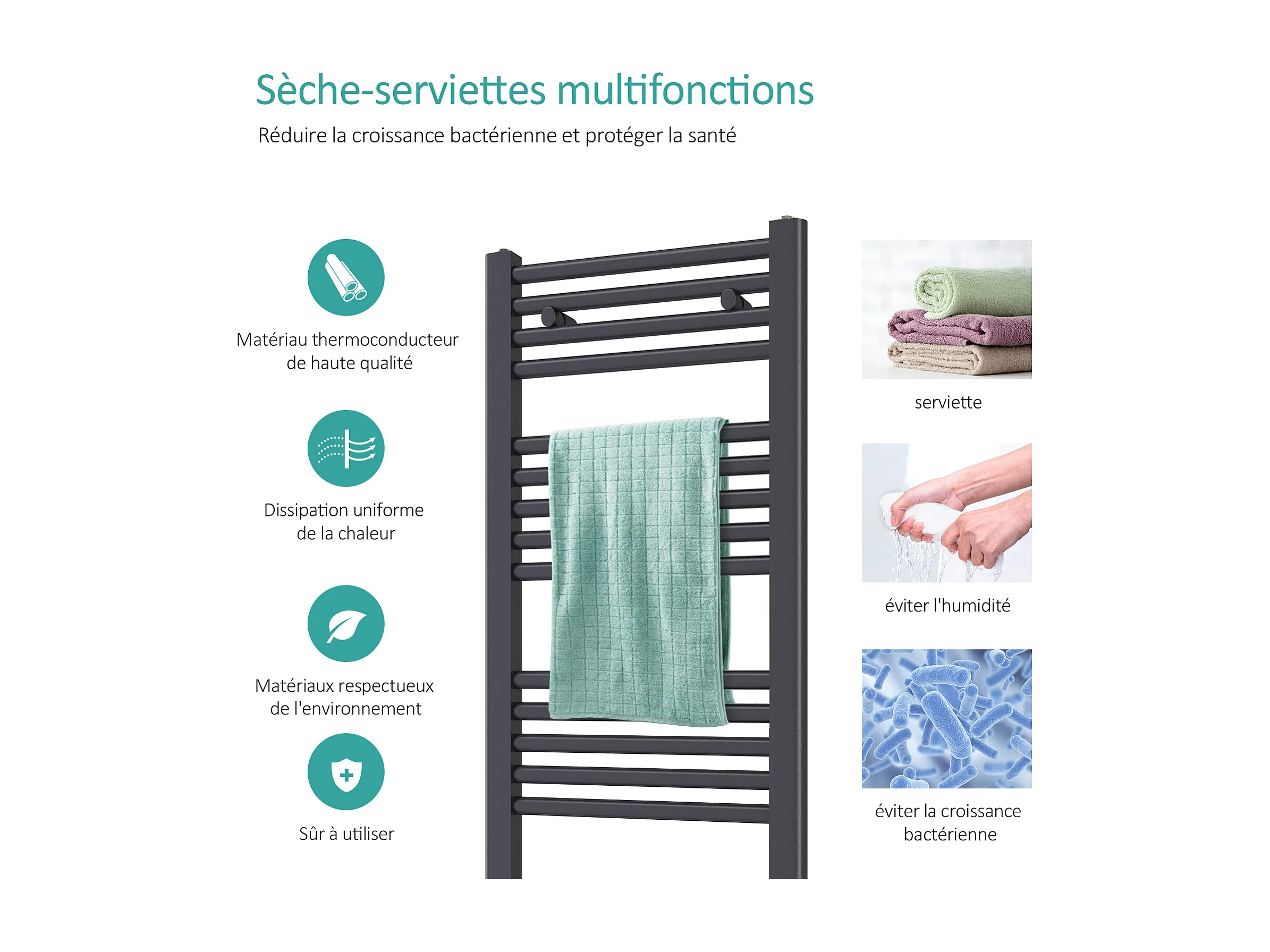 Radiateur sèche-serviette forme droite anthracite connexion latérale 50x150 cm
