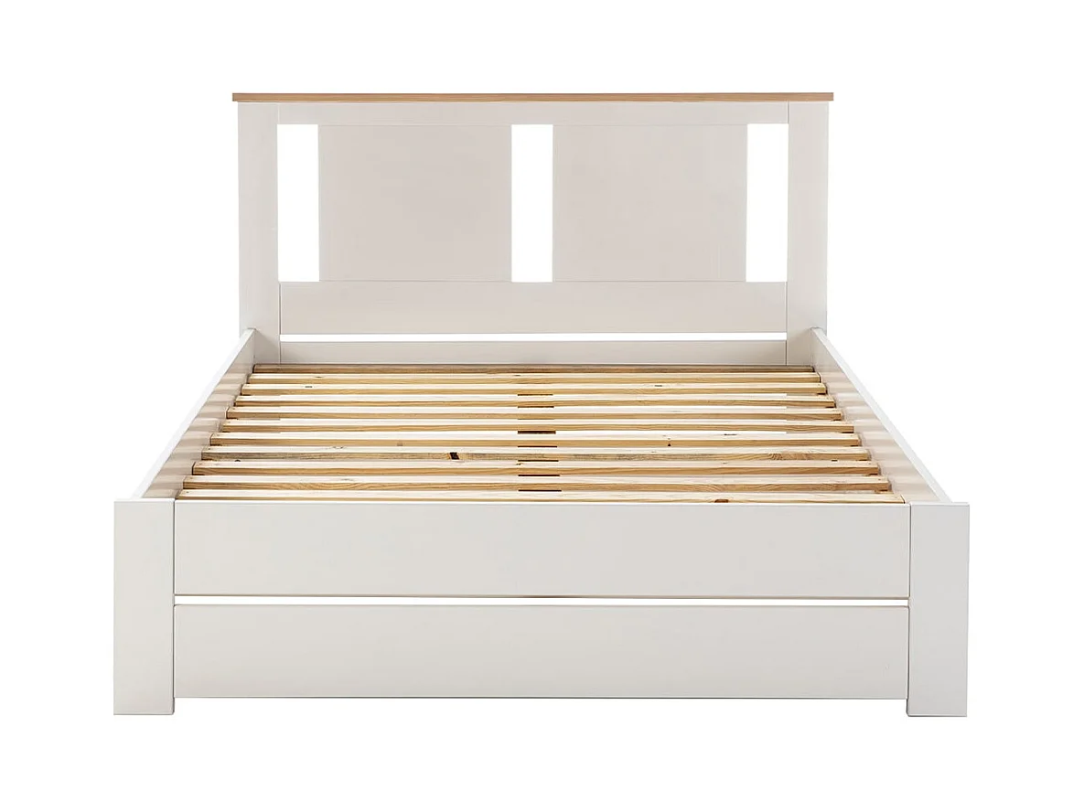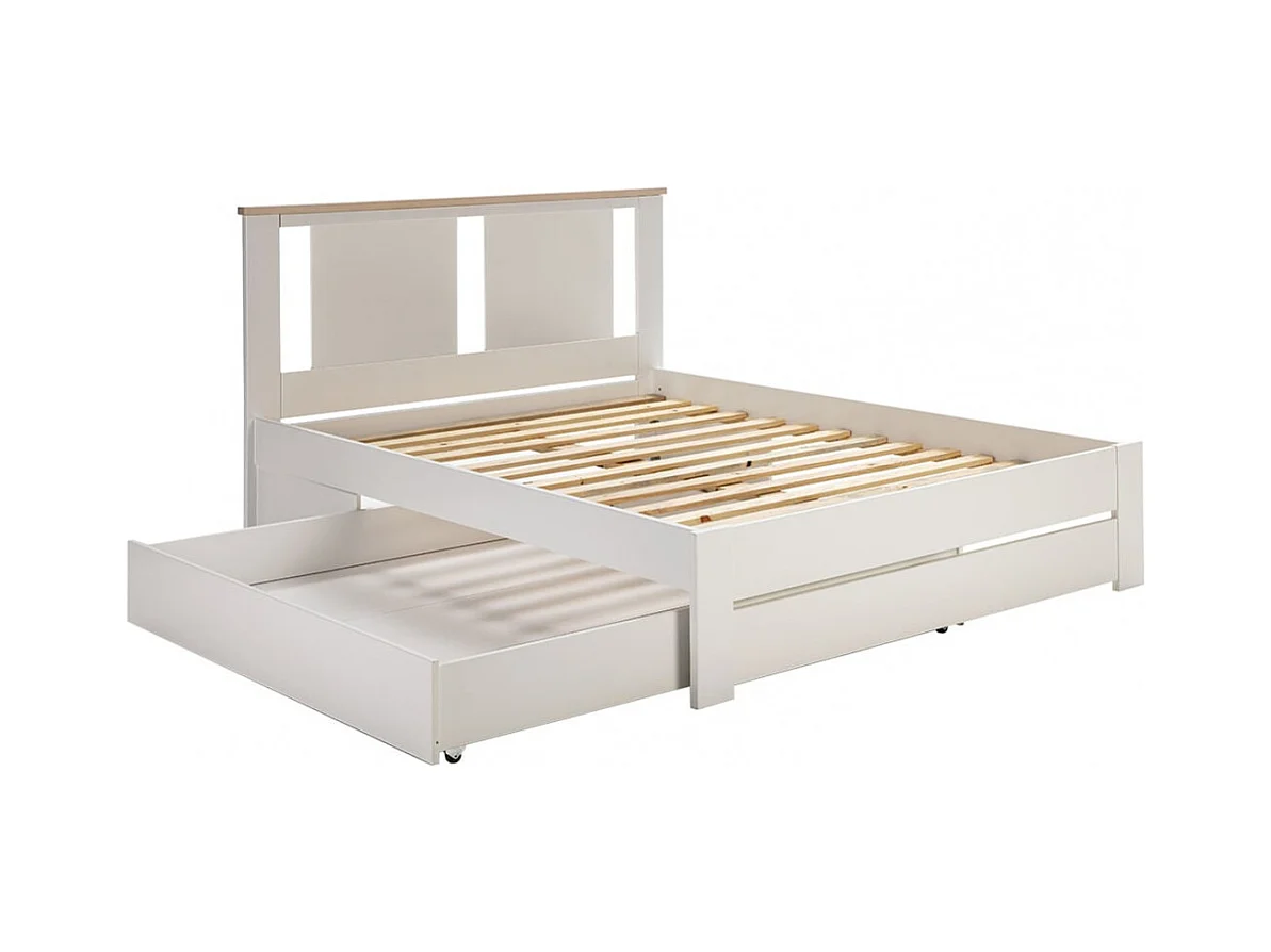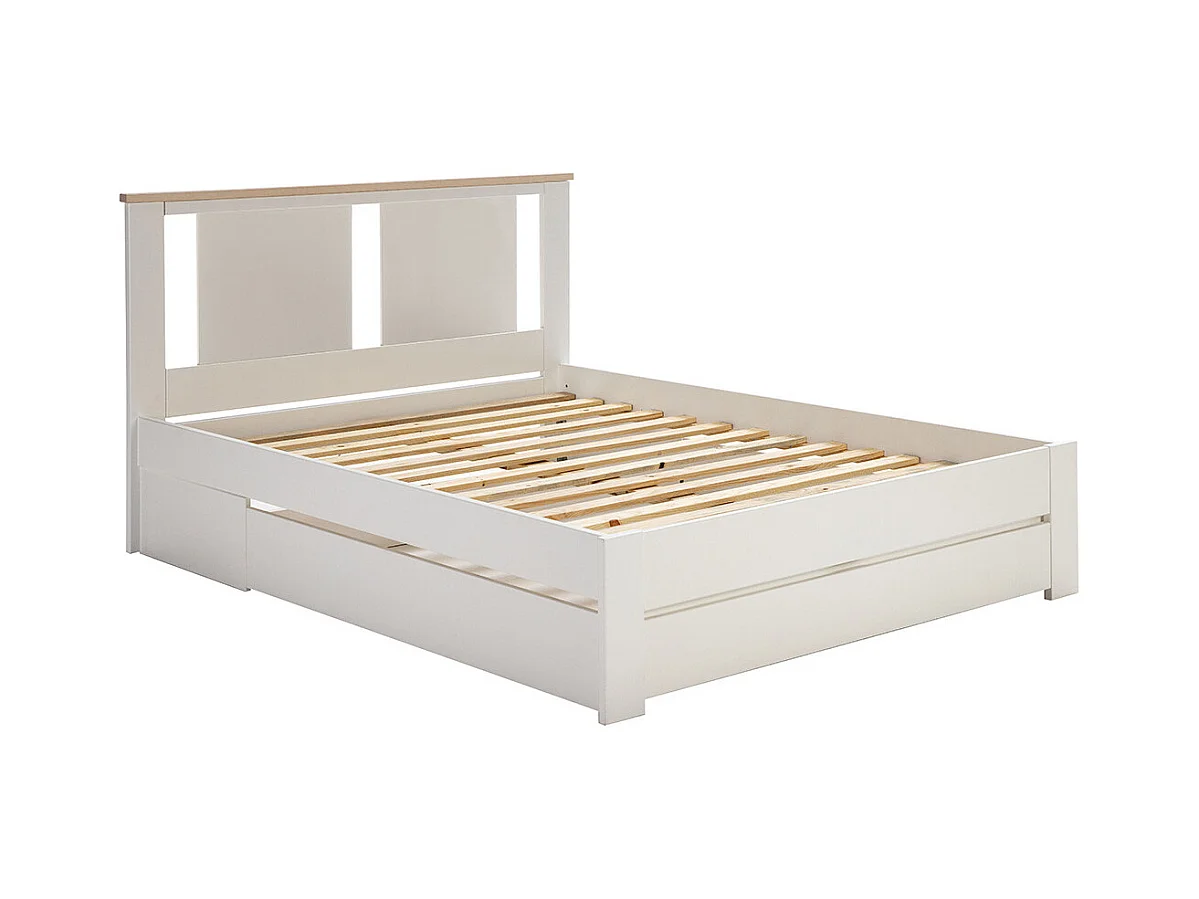 EMORI - Lit 140x190cm avec Tiroir, MDF et Pin Coloris Blanc et Effet Chêne