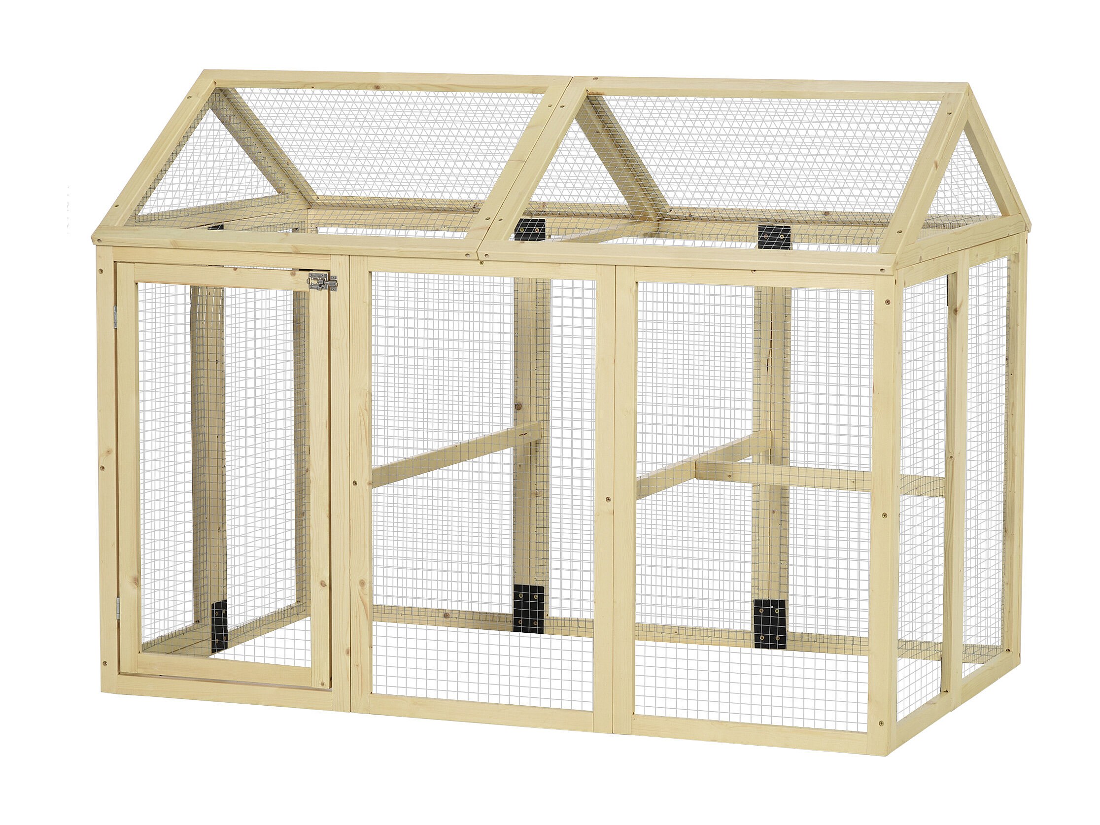 Enclos poulailler chenil 1,23 m² - parc grillagé dim 140L x 88,5l x 106H cm - 2 portes verrouillables - bois sapin