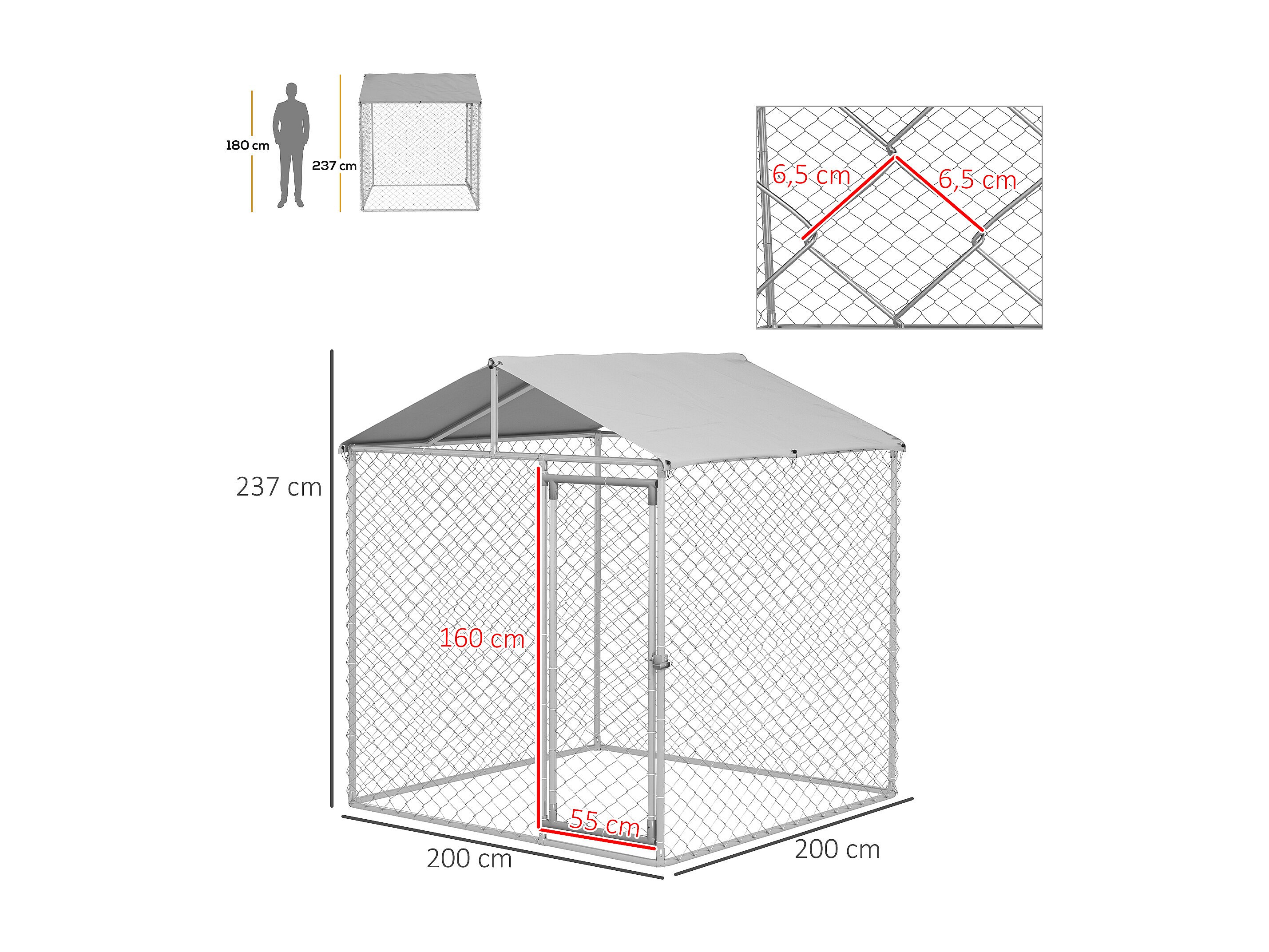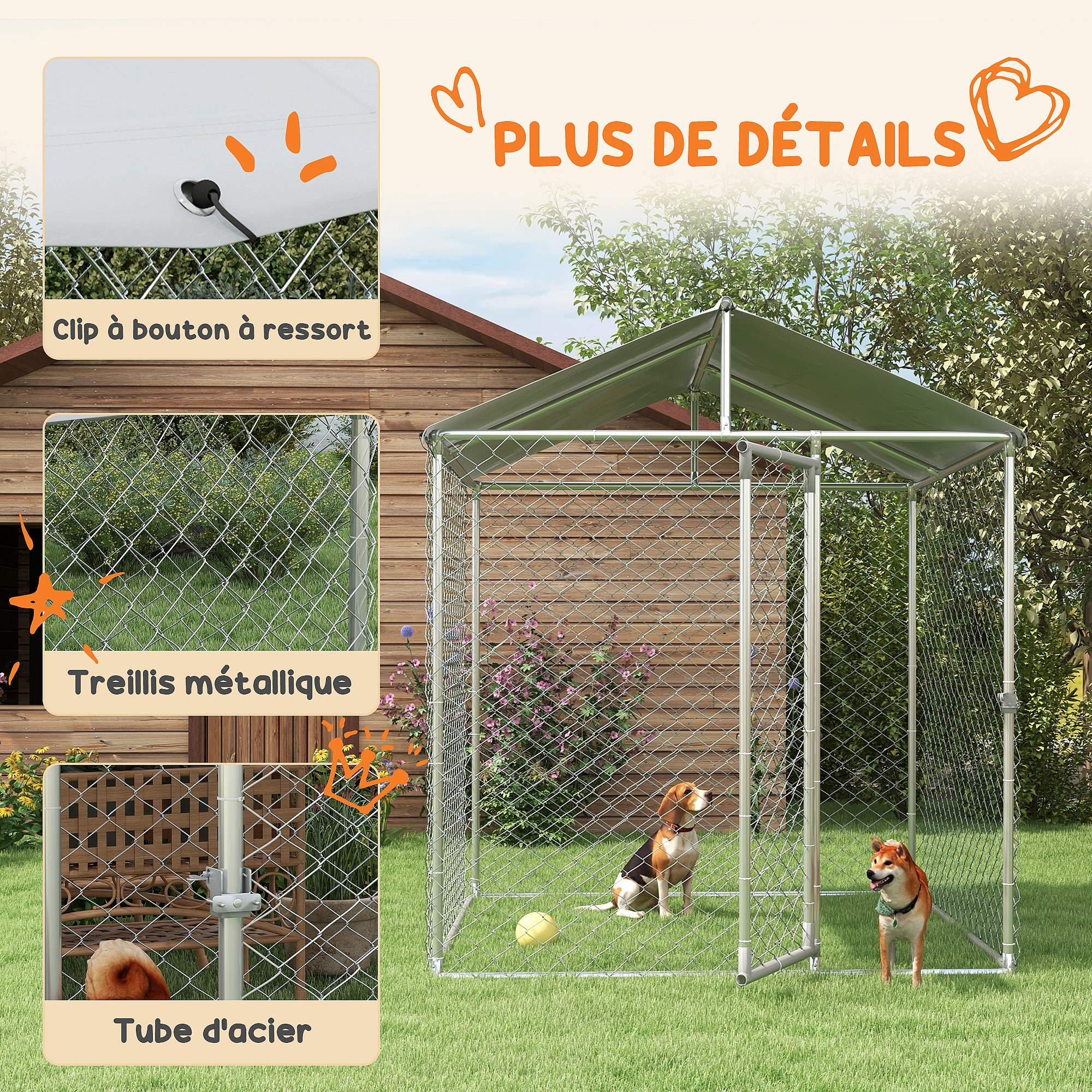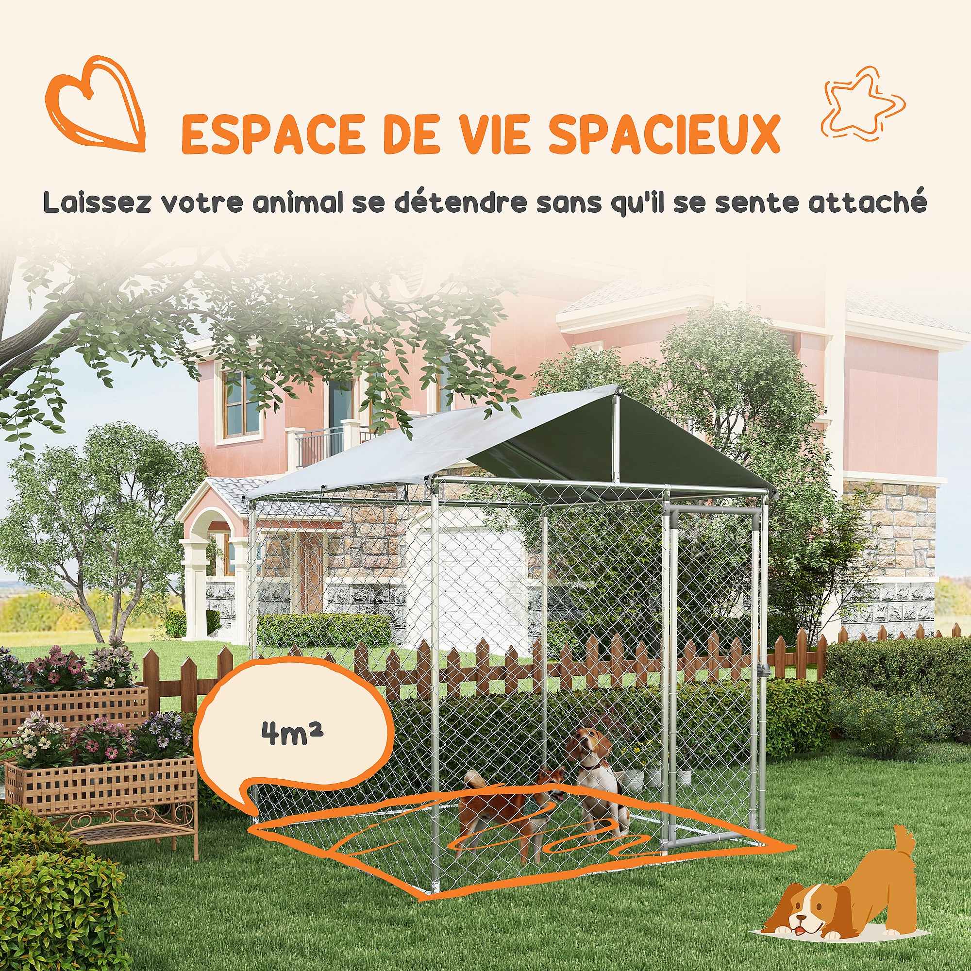 Enclos poulailler chenil 4 m² - parc grillagé dim. 2L x 2l x 2,37H m - poulailler chenil entièrement couvert - acier galvanisé