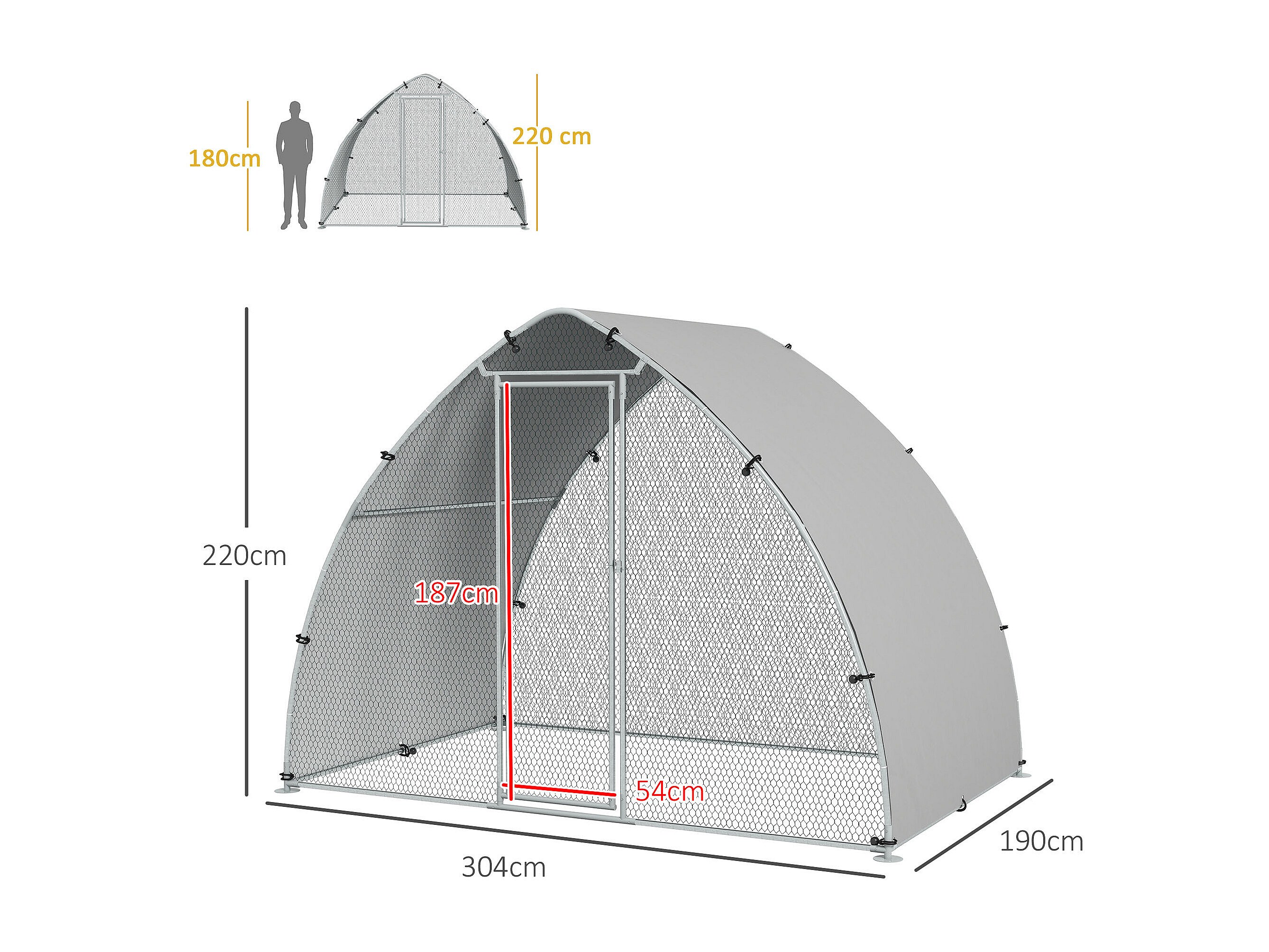 Enclos poulailler chenil 5 m² - parc grillagé dim. 2,8L x 2,45l x 2,46H m - entièrement couvert - acier oxford gris