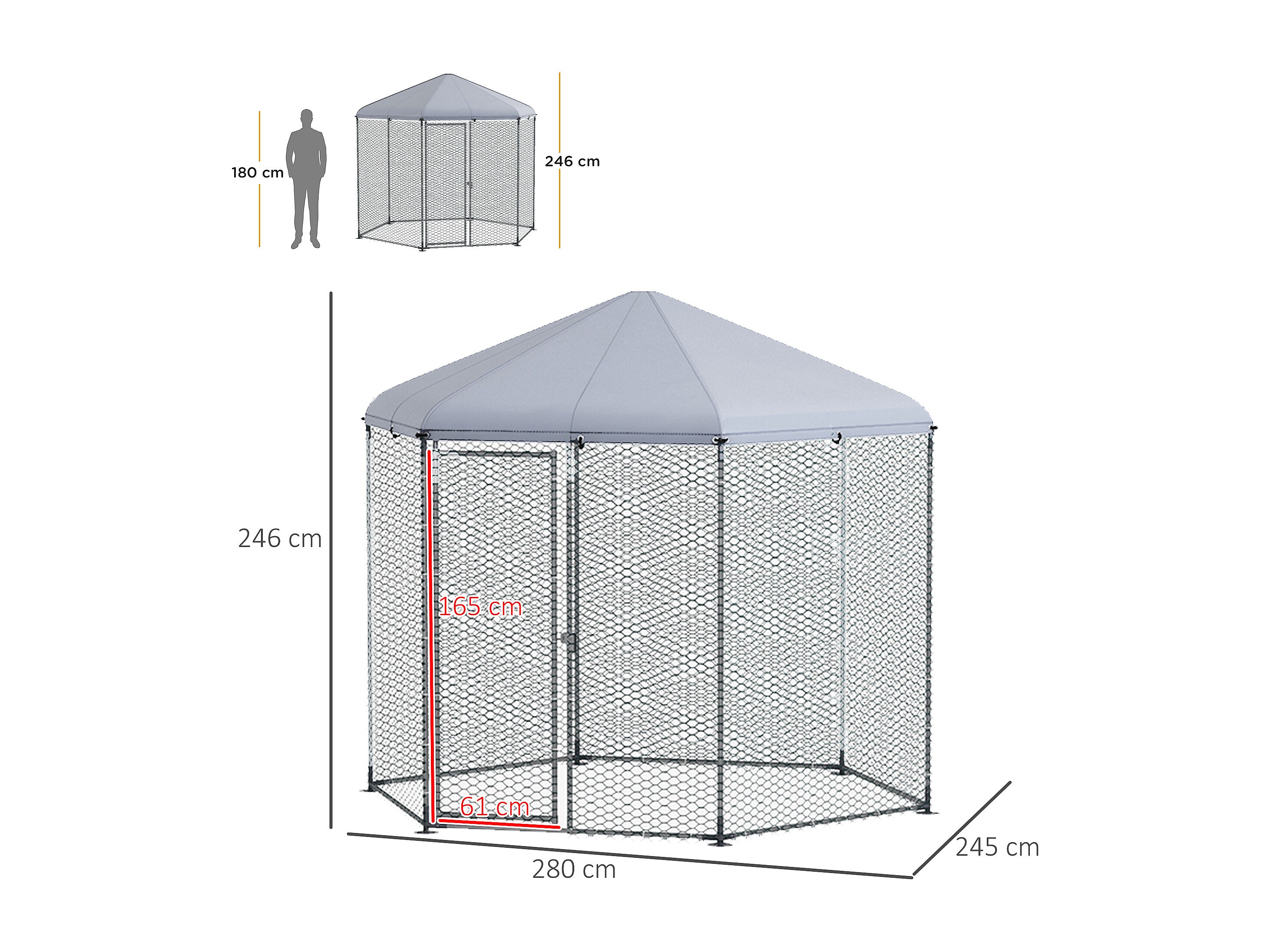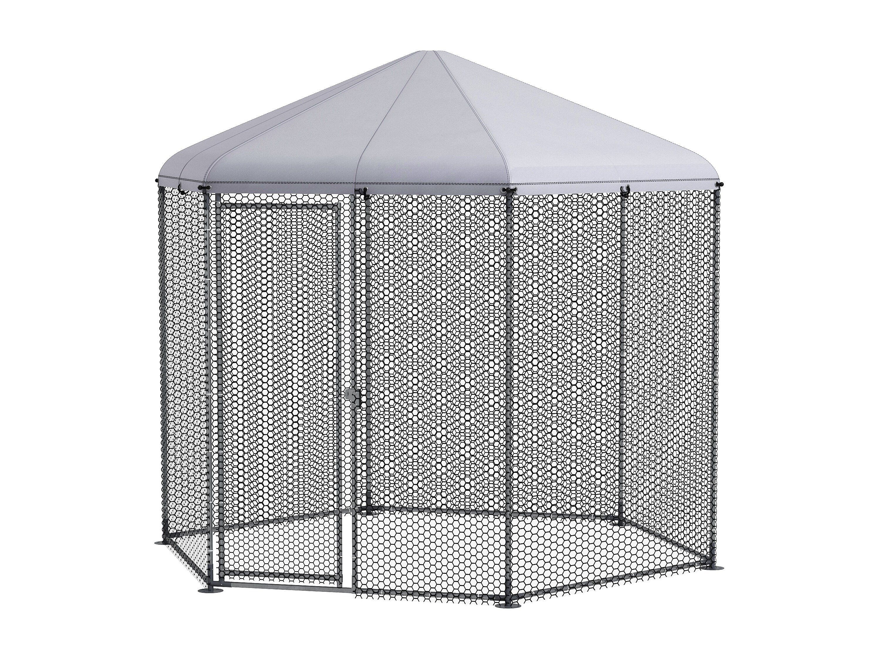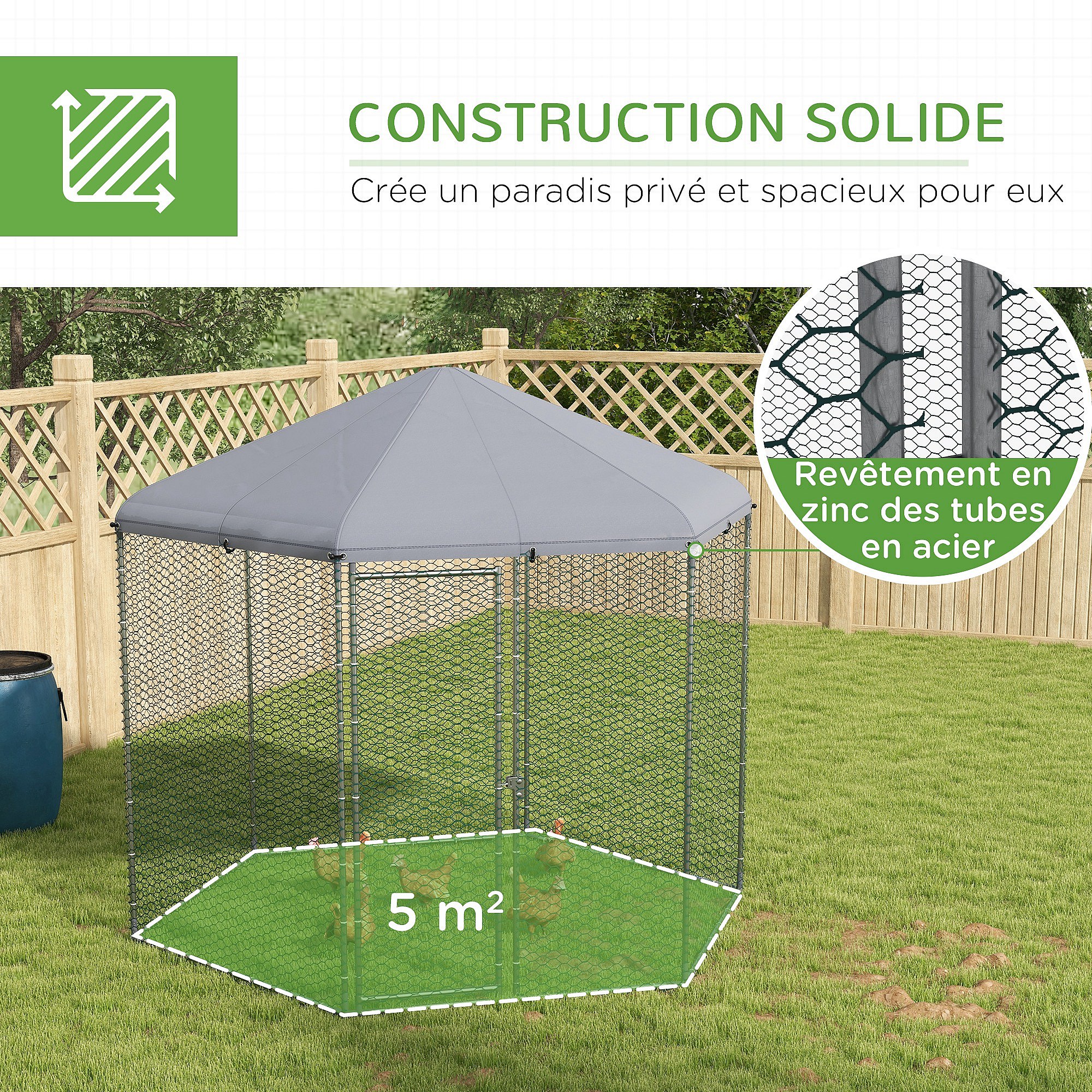 Enclos poulailler chenil 5 m² - parc grillagé dim. 2,8L x 2,45l x 2,46H m - entièrement couvert - acier oxford gris