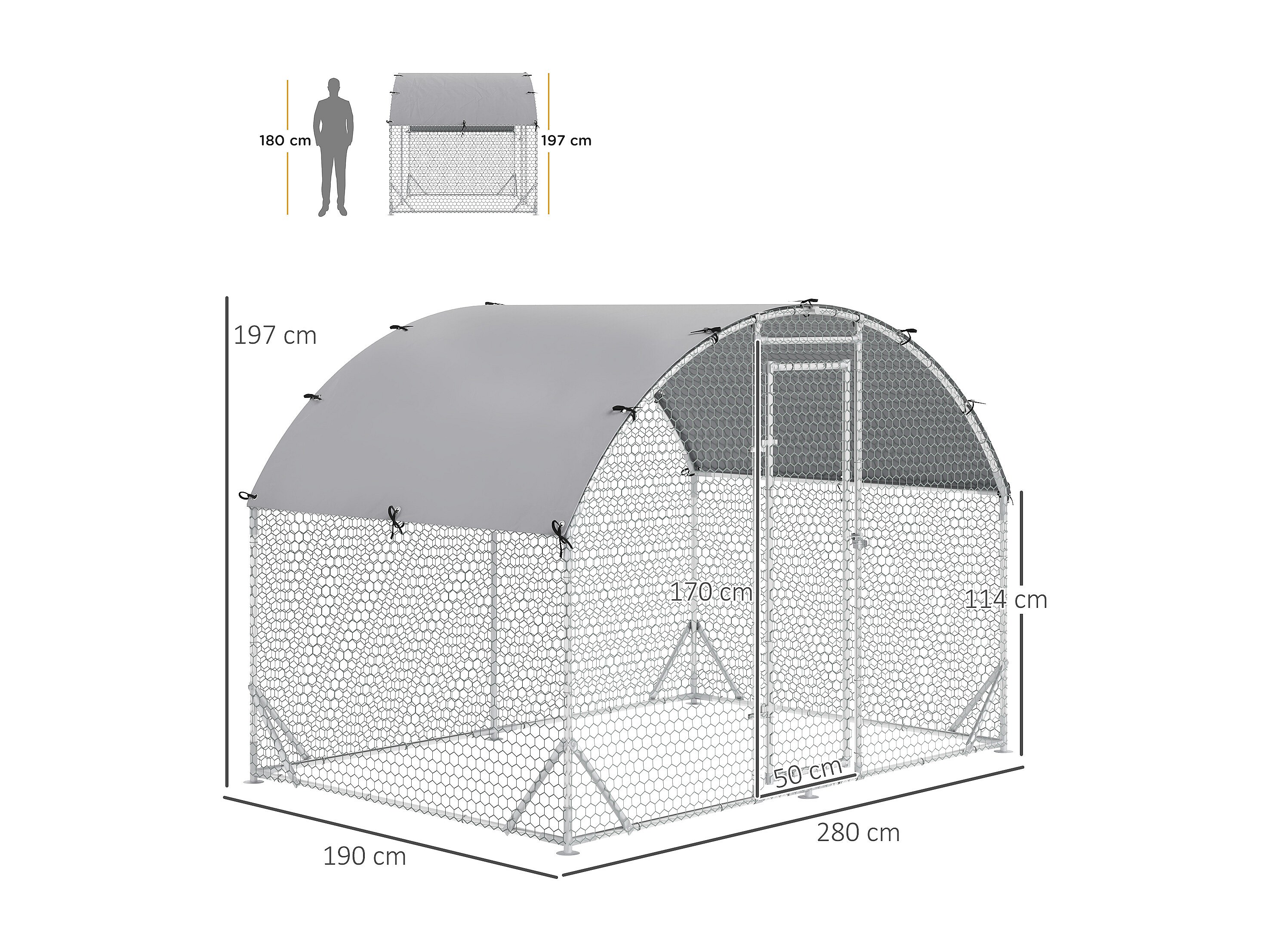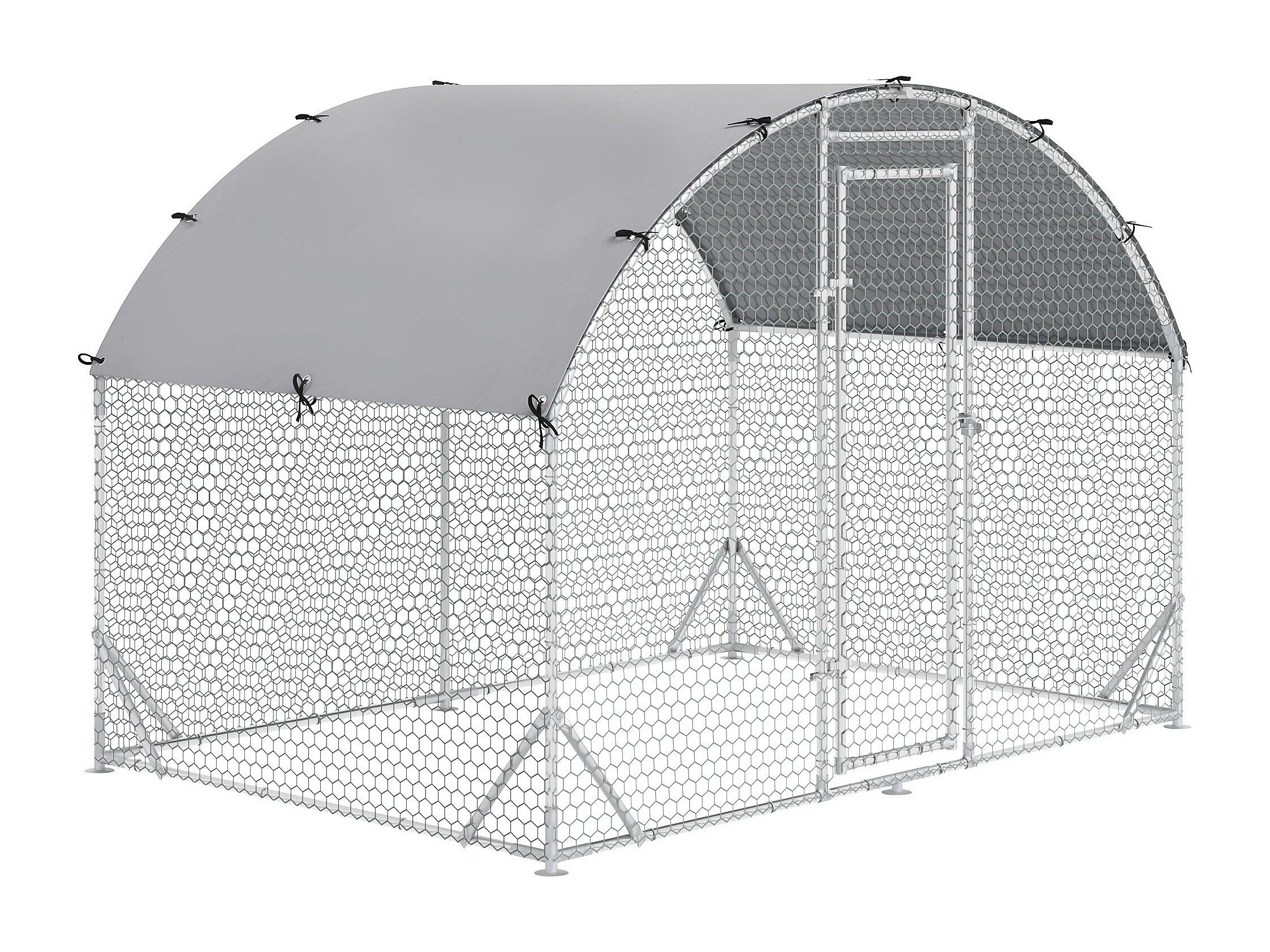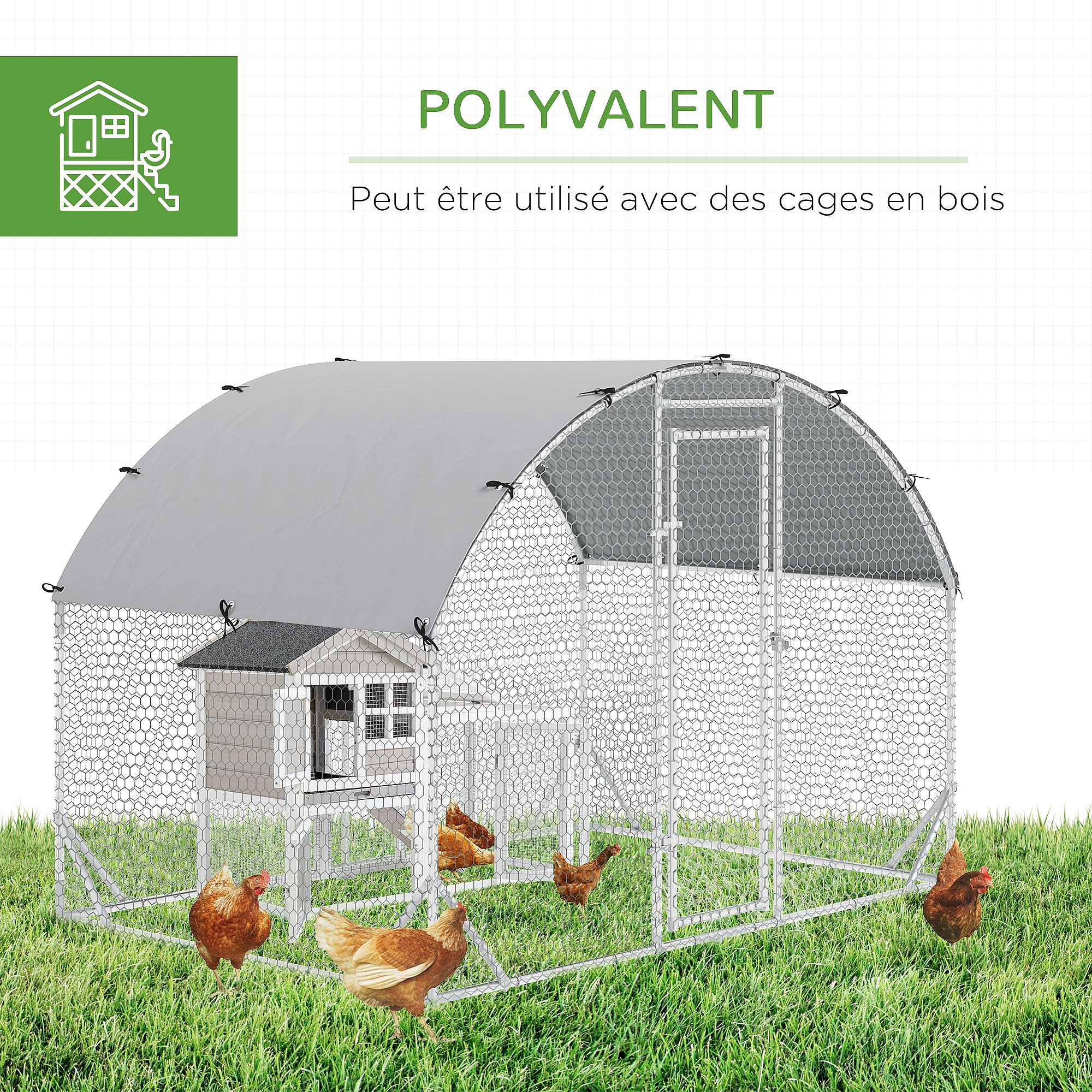 Enclos poulailler chenil couvert 5,32 m² - parc grillagé dim. 2,8L x 1,9l x 1,97H m - acier galvanisé