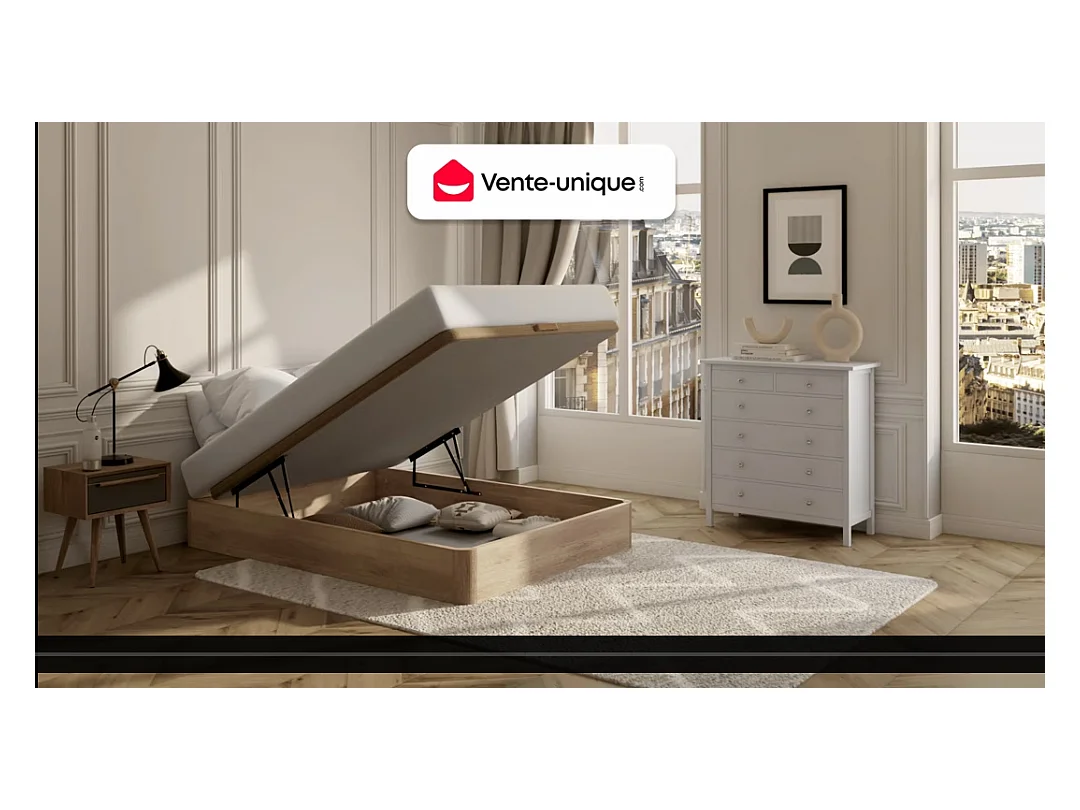 Ensemble 140 x 190 cm sommier coffre naturel clair + matelas mousse et accueil mémoire de forme 11 zones ép.22cm - DANEVO de YSMÉE