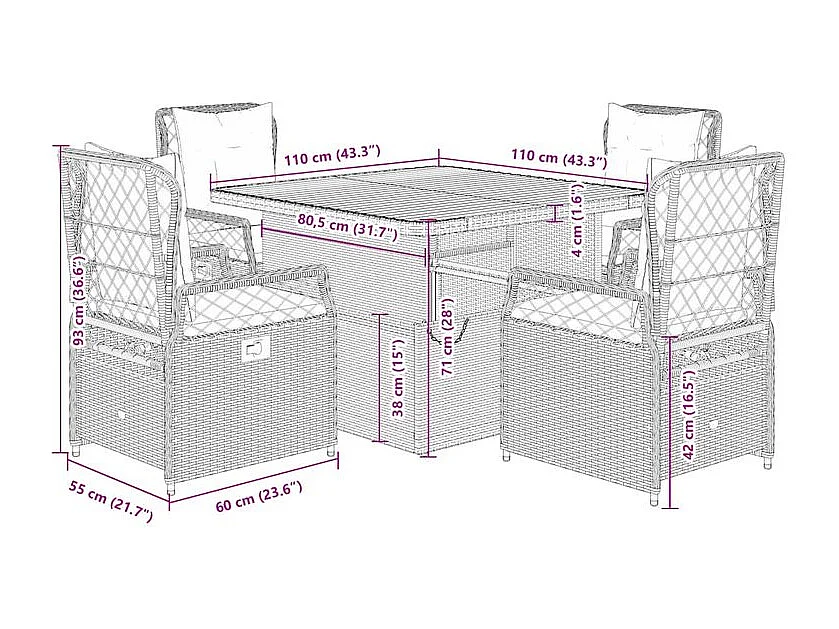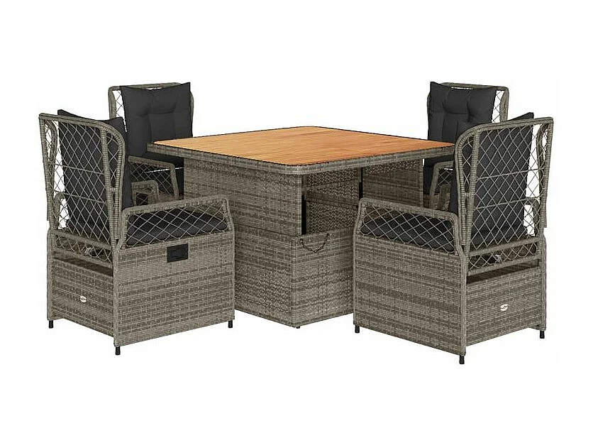 Ensemble à manger de jardin 5 pcs coussins gris résine tressée