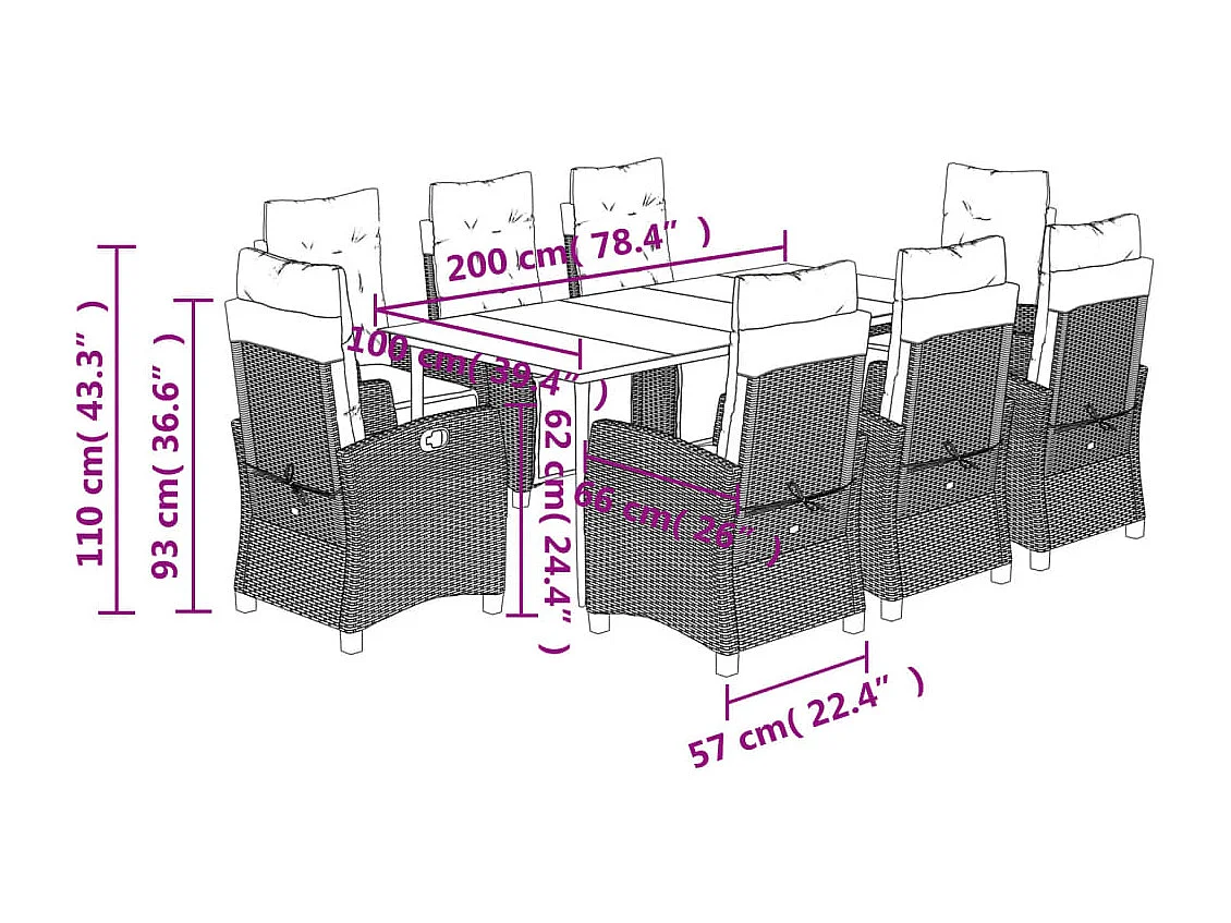 Ensemble à manger de jardin 9 pièces coussins noir résine tressée