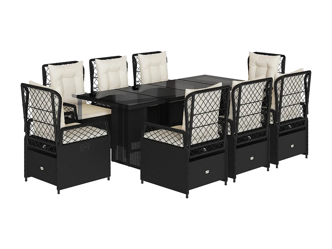 Ensemble à manger de jardin 9pcs coussins noir résine tressée