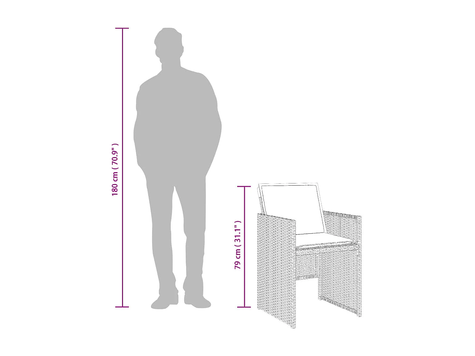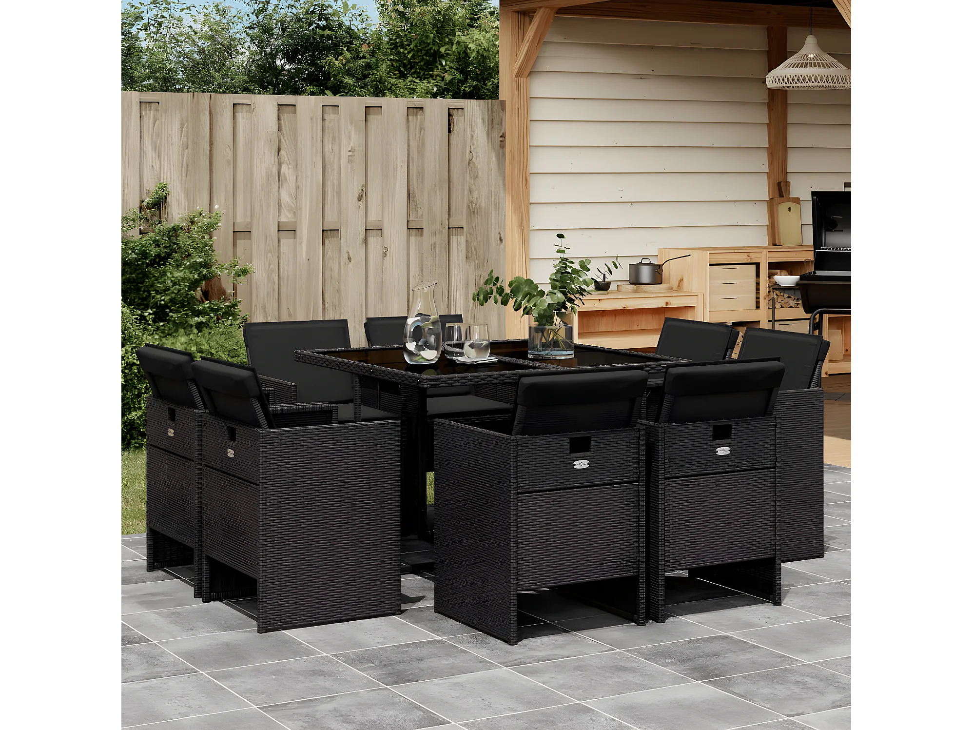 Ensemble à manger de jardin 9pcs coussins noir résine tressée