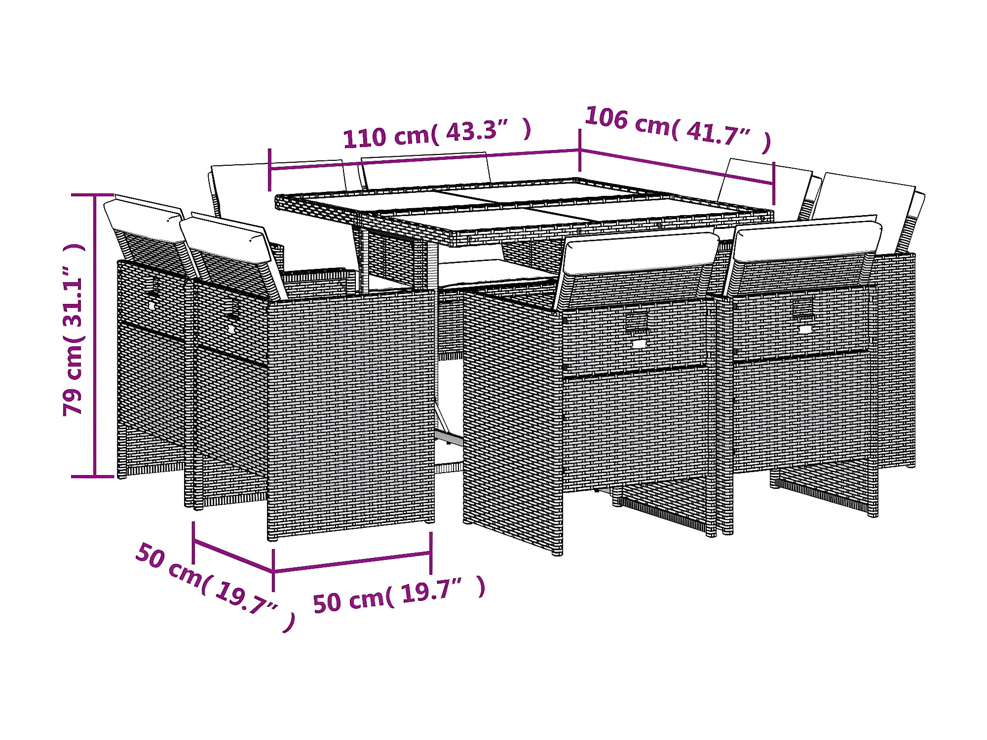 Ensemble à manger de jardin 9pcs coussins noir résine tressée