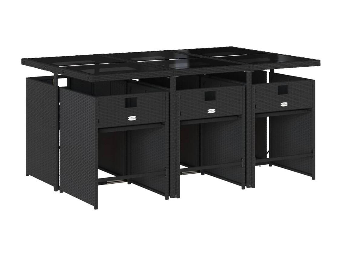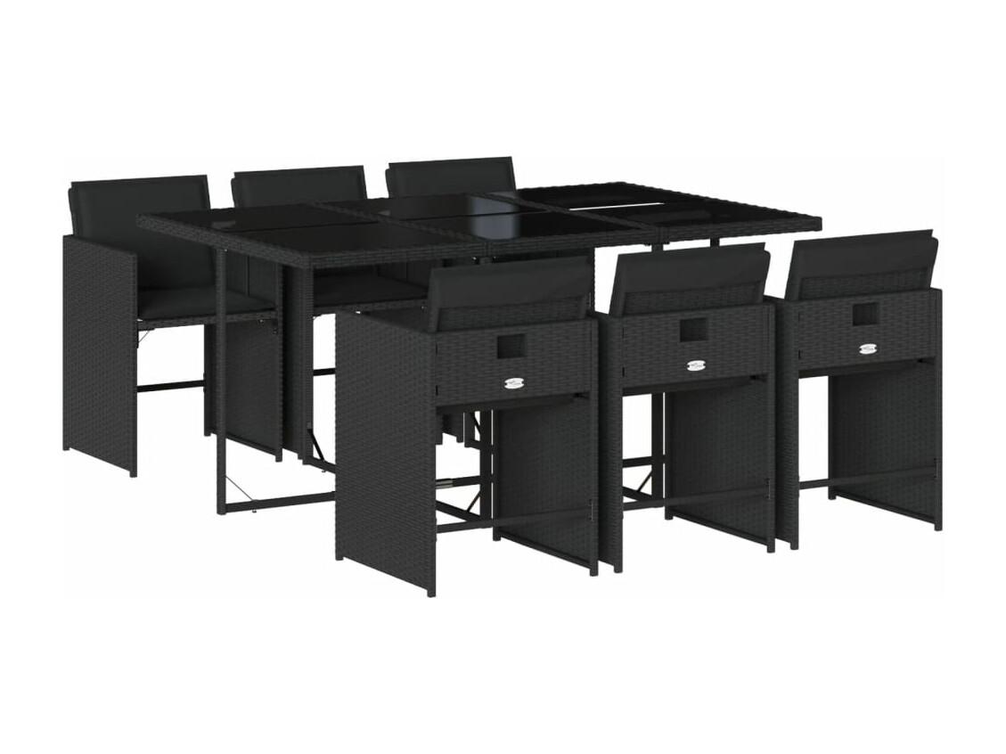 Ensemble à manger de jardin coussins 7 pièces Noir Résine tressée