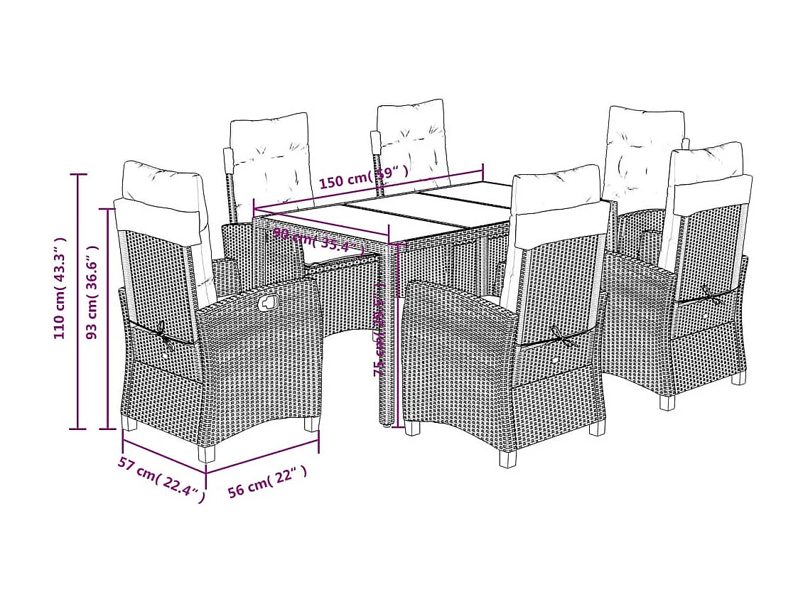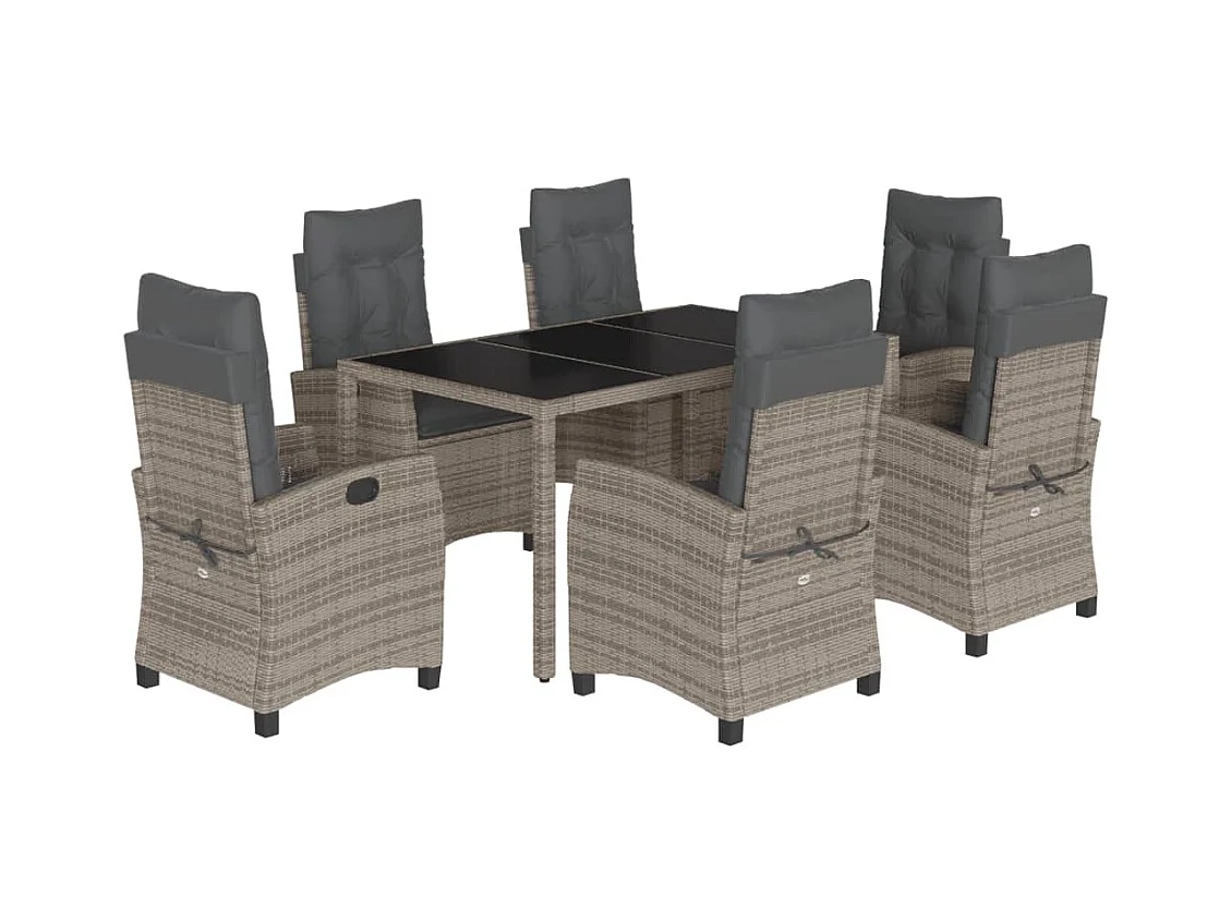 Ensemble à manger de jardin et coussins 7 pcs gris rotin