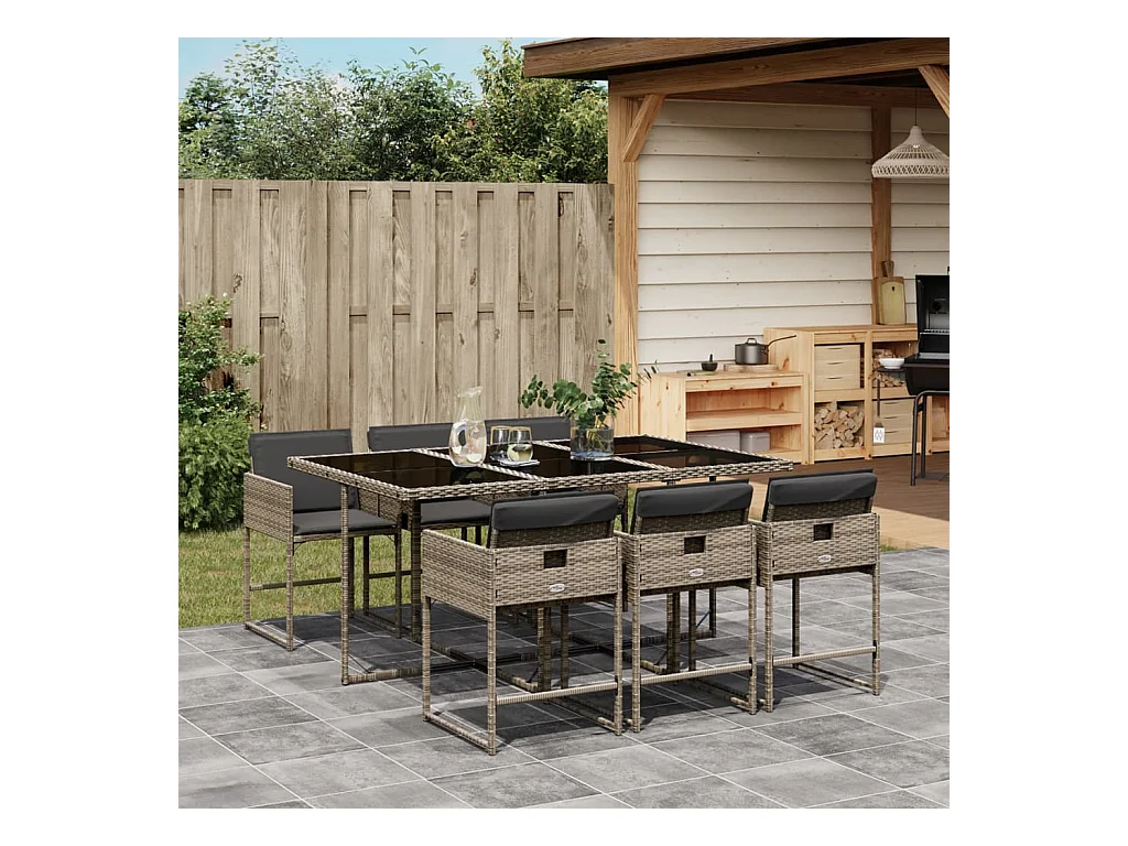 Ensemble à manger de jardin et coussins 7 pièces gris rotin