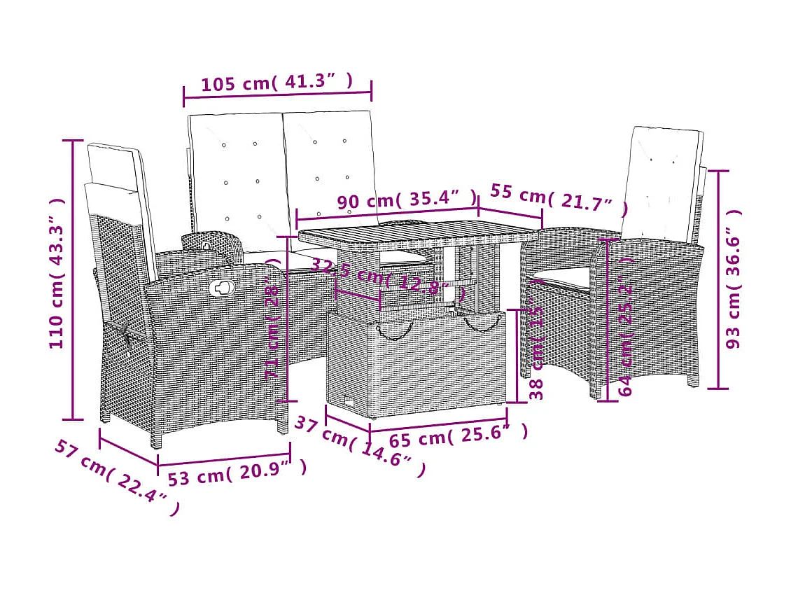 Ensemble à manger jardin 4pcs et coussins Gris Résine tressée