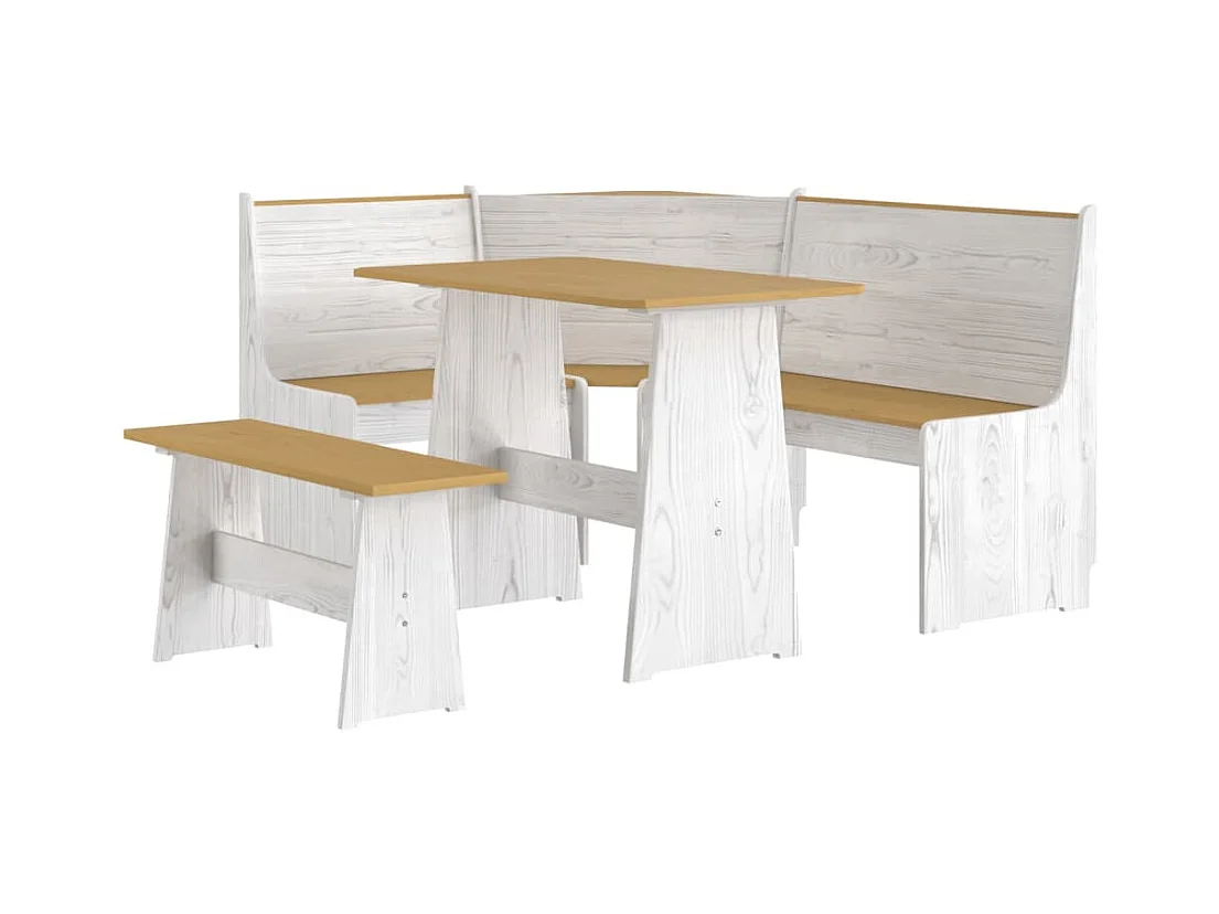 Ensemble à manger REINE 3 pcs marron miel blanc bois pin massif