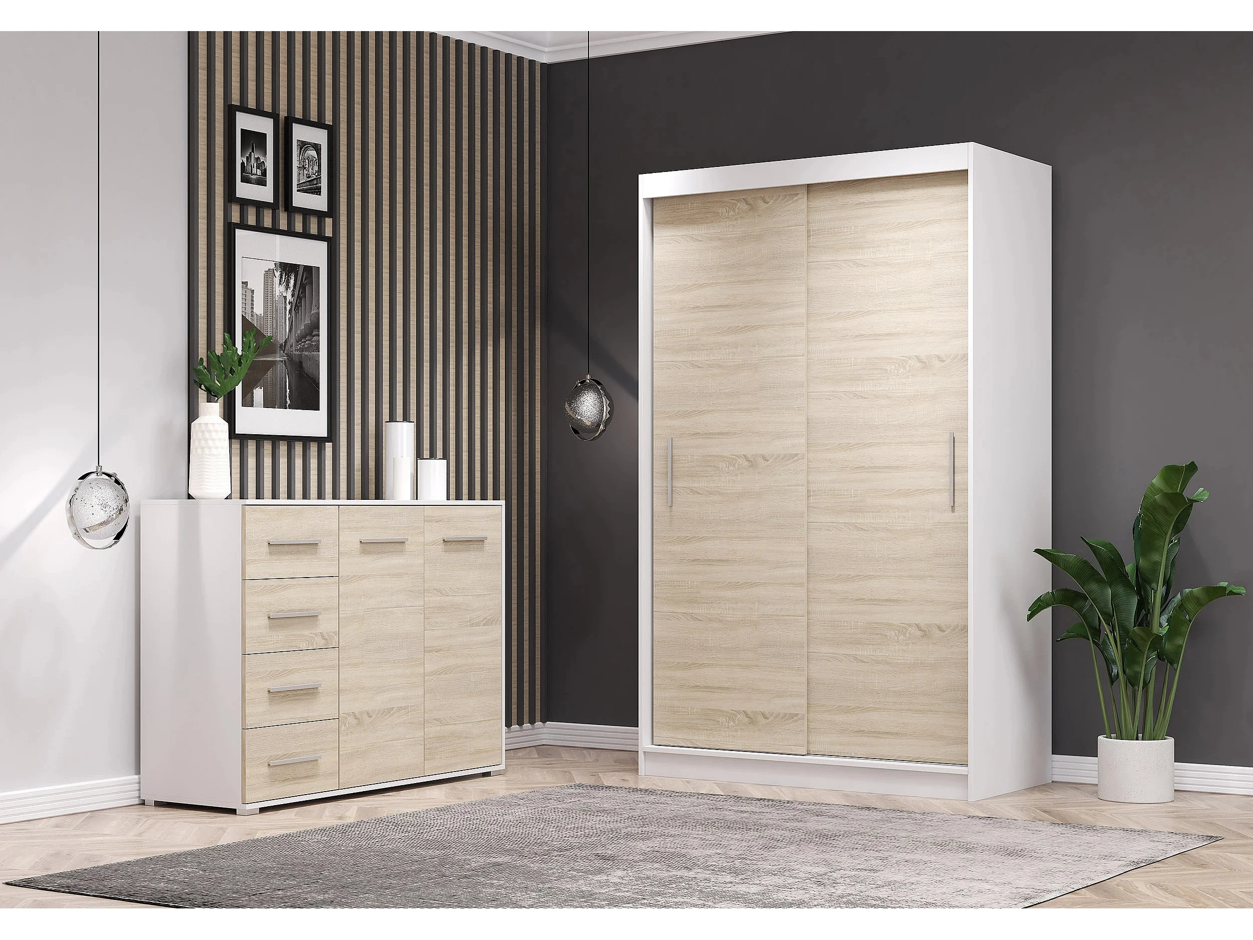 Ensemble armoire Yvae et commode Ilario - Blanc - Chêne
