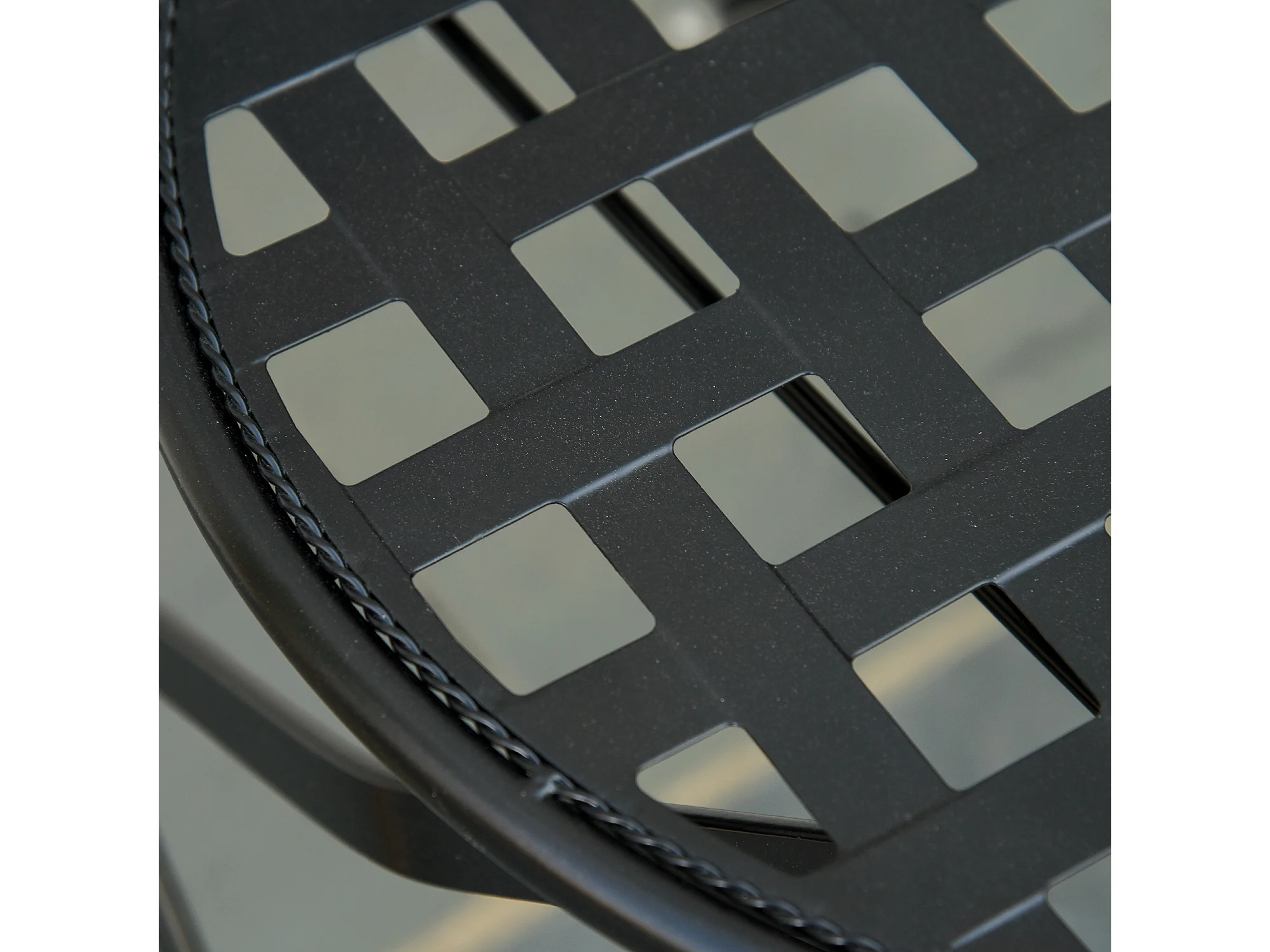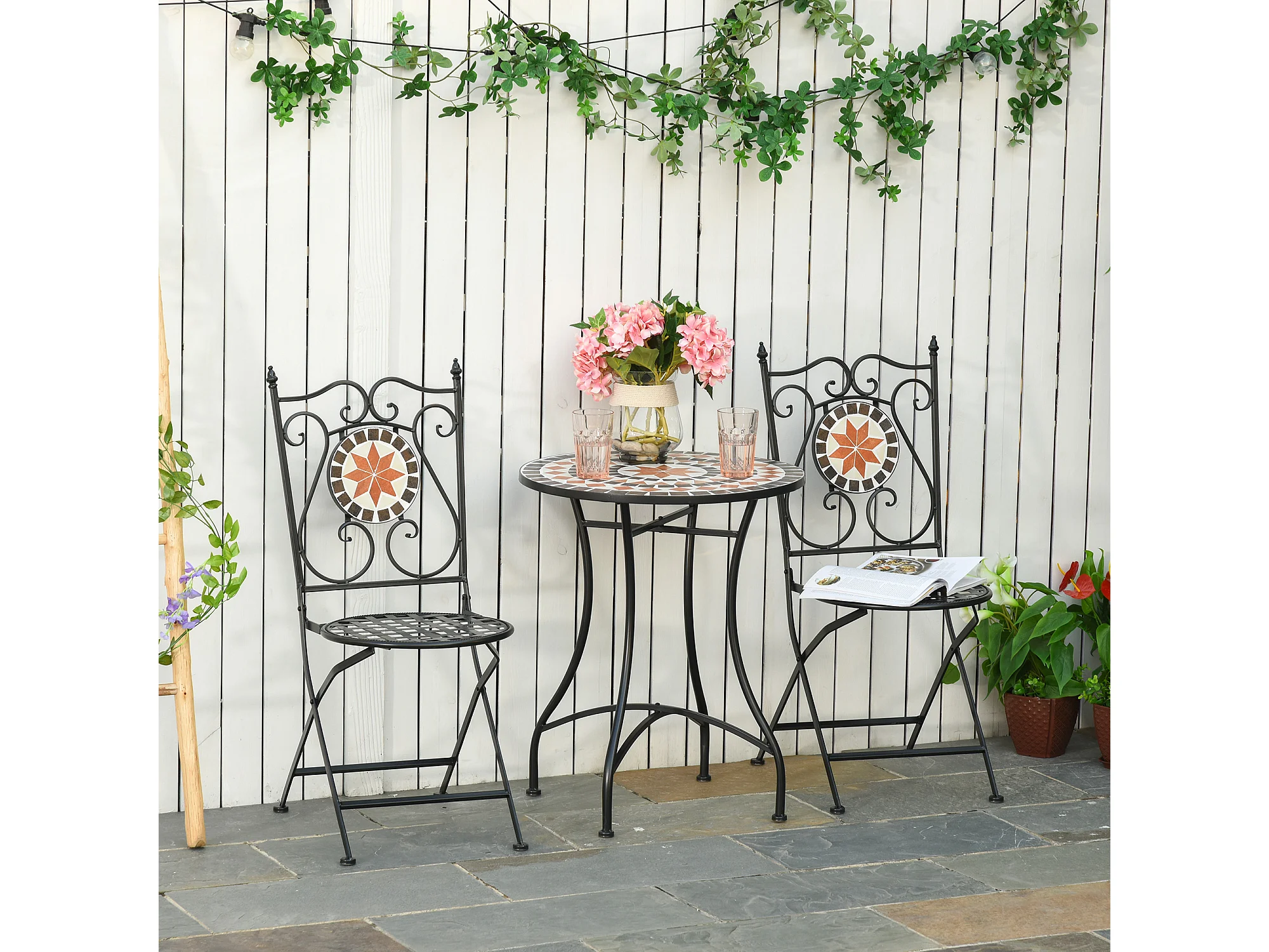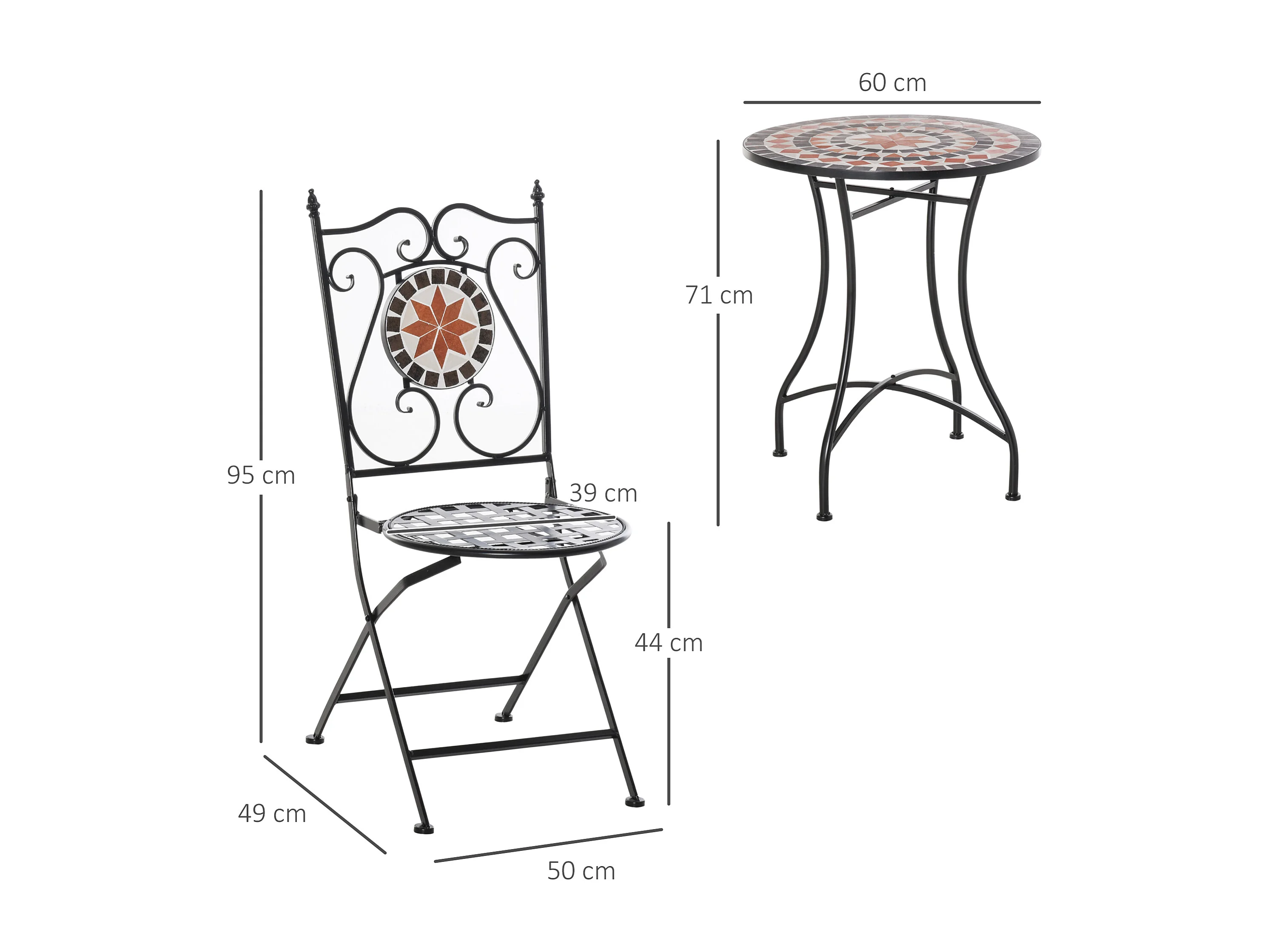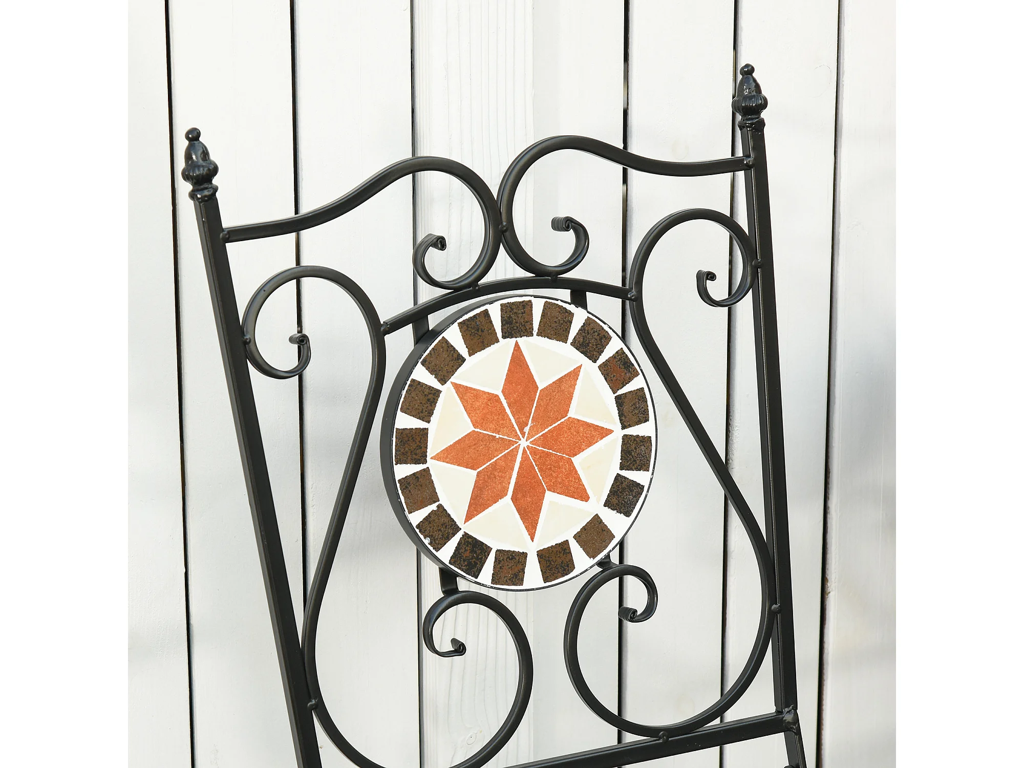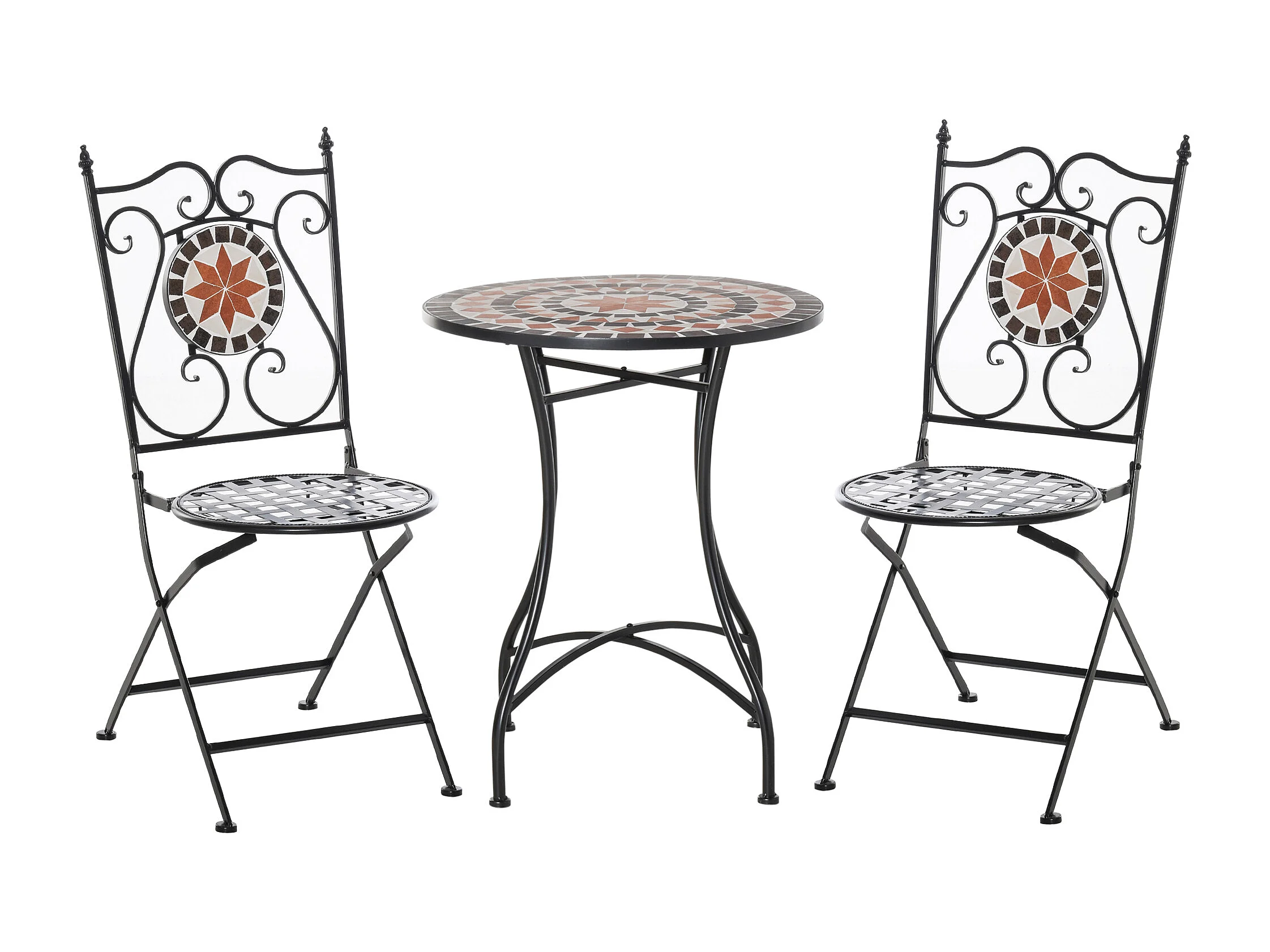 Ensemble bistro 2 places 3 pièces style fer forgé mosaïque céramique motif rose des vents chaises pliables métal époxy noir