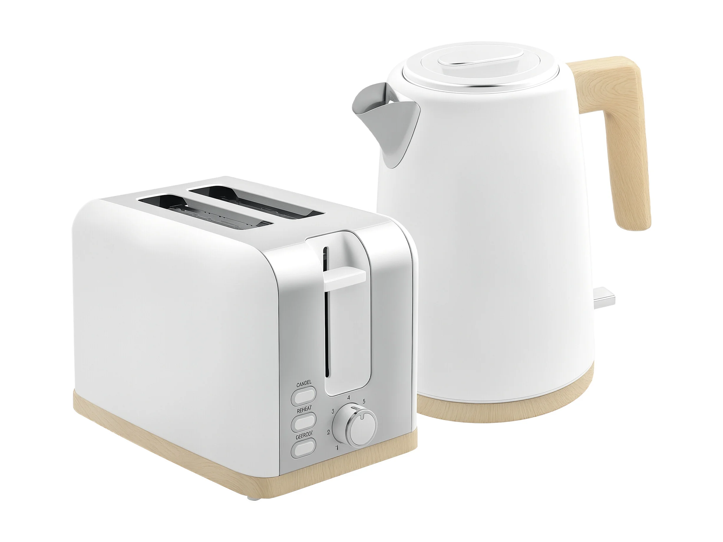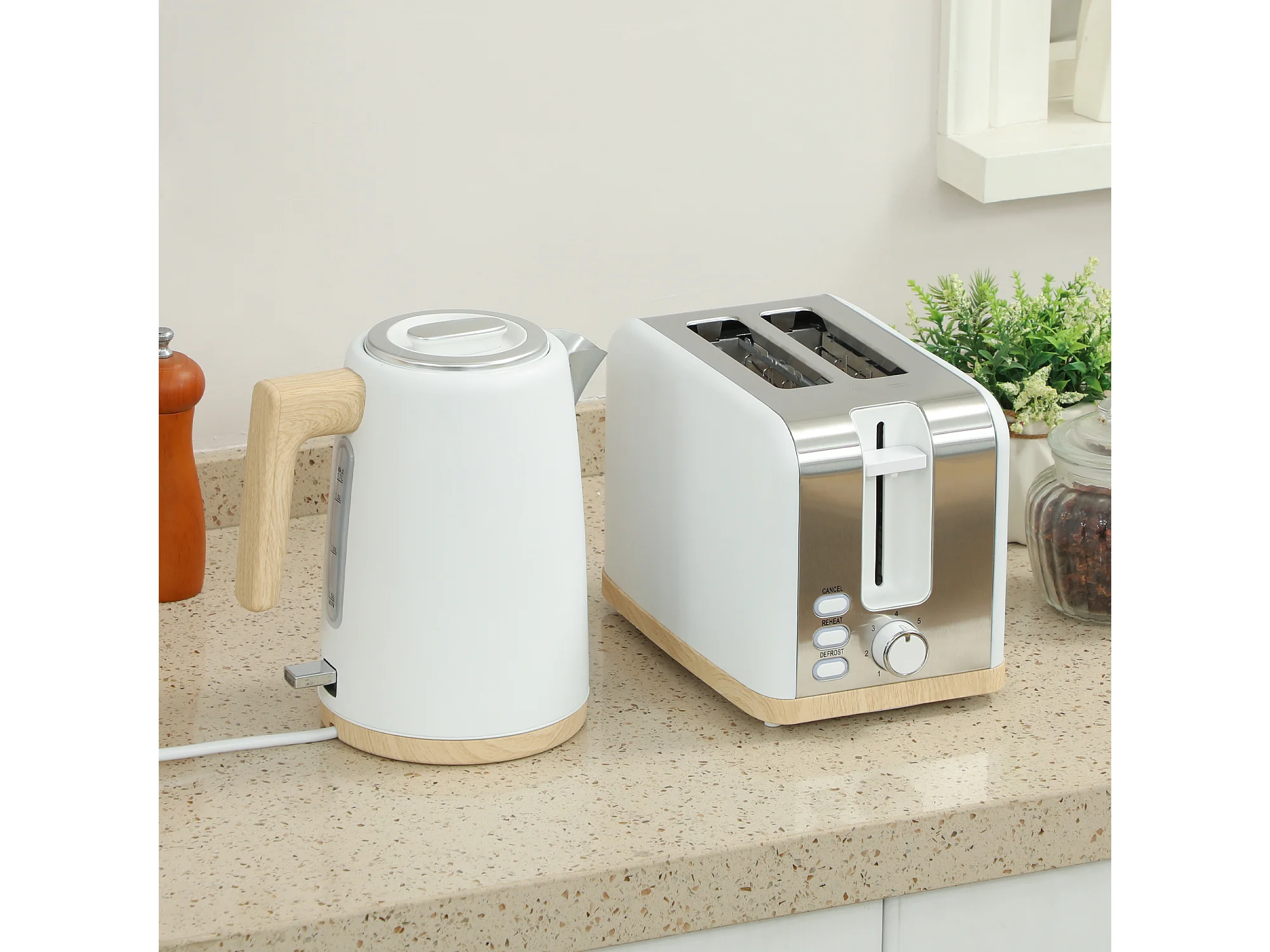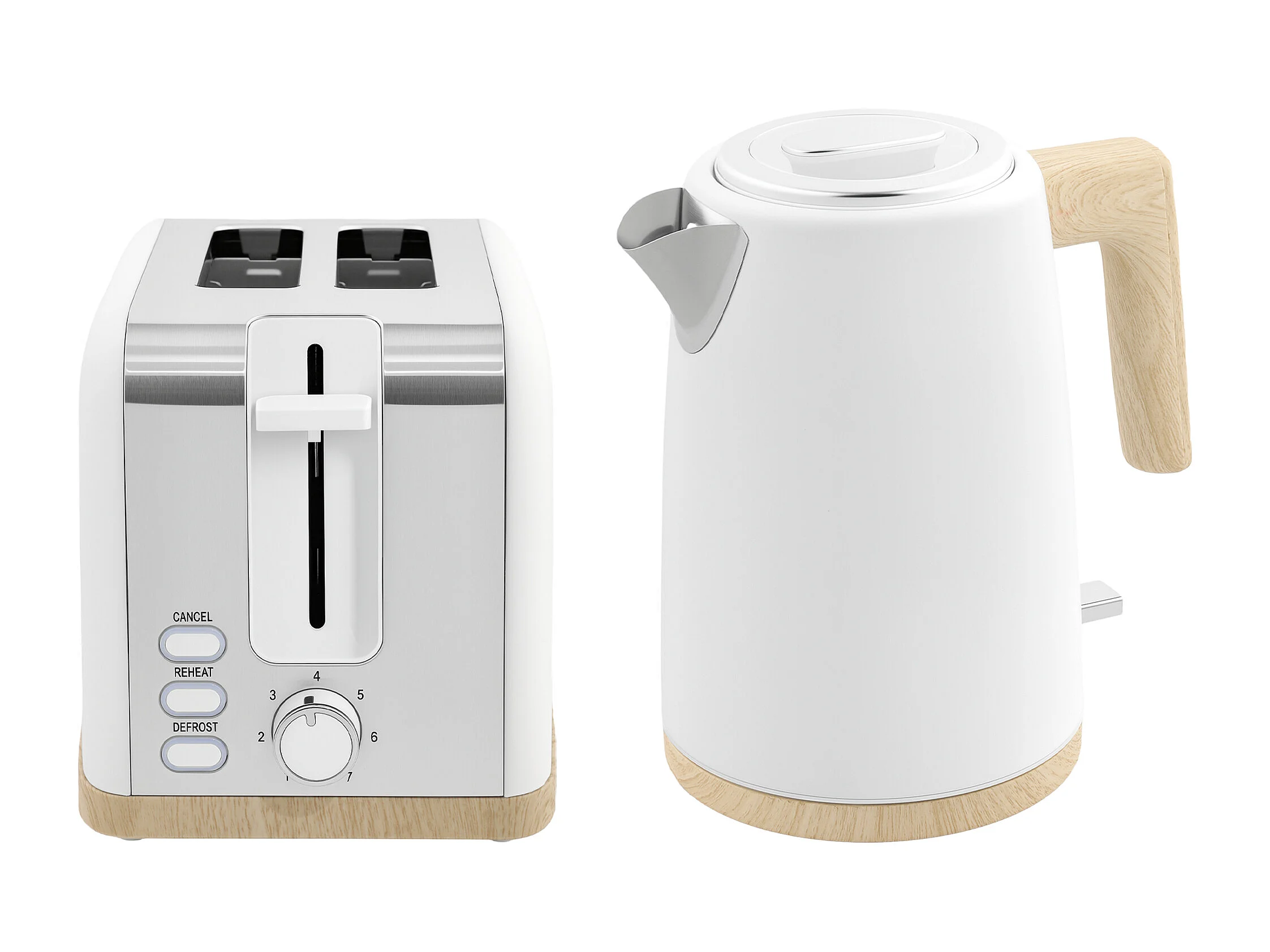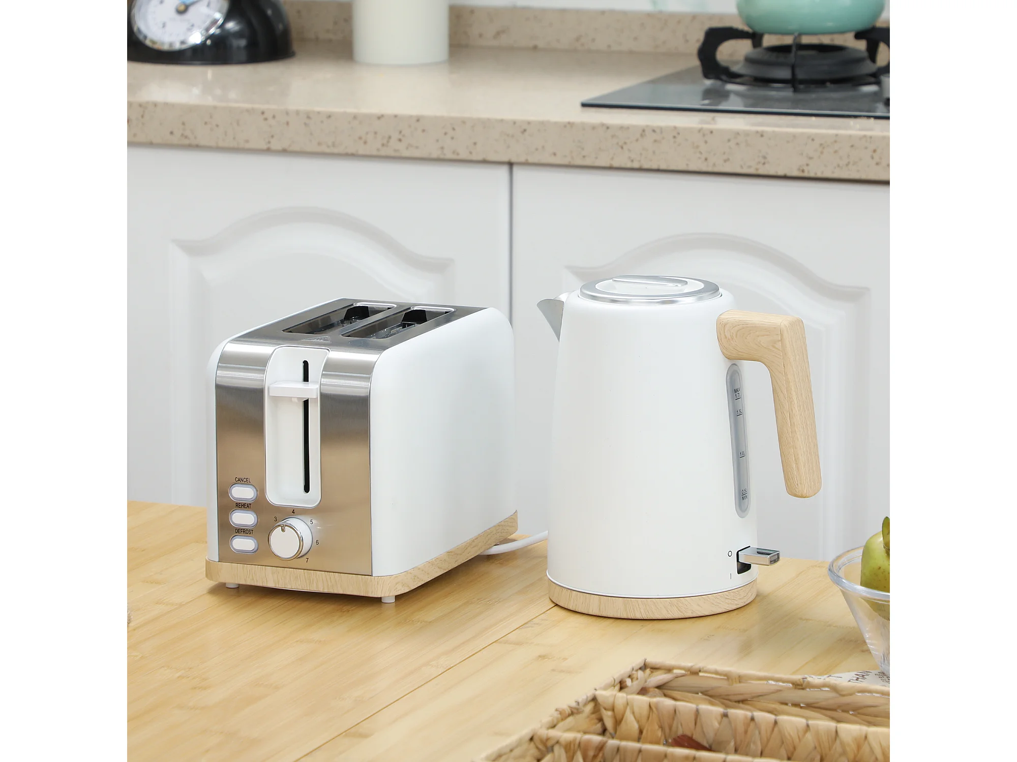 Ensemble bouilloire grille-pain vintage - grille-pain 2200W, bouilloire 1,7L - blanc gris effet bois