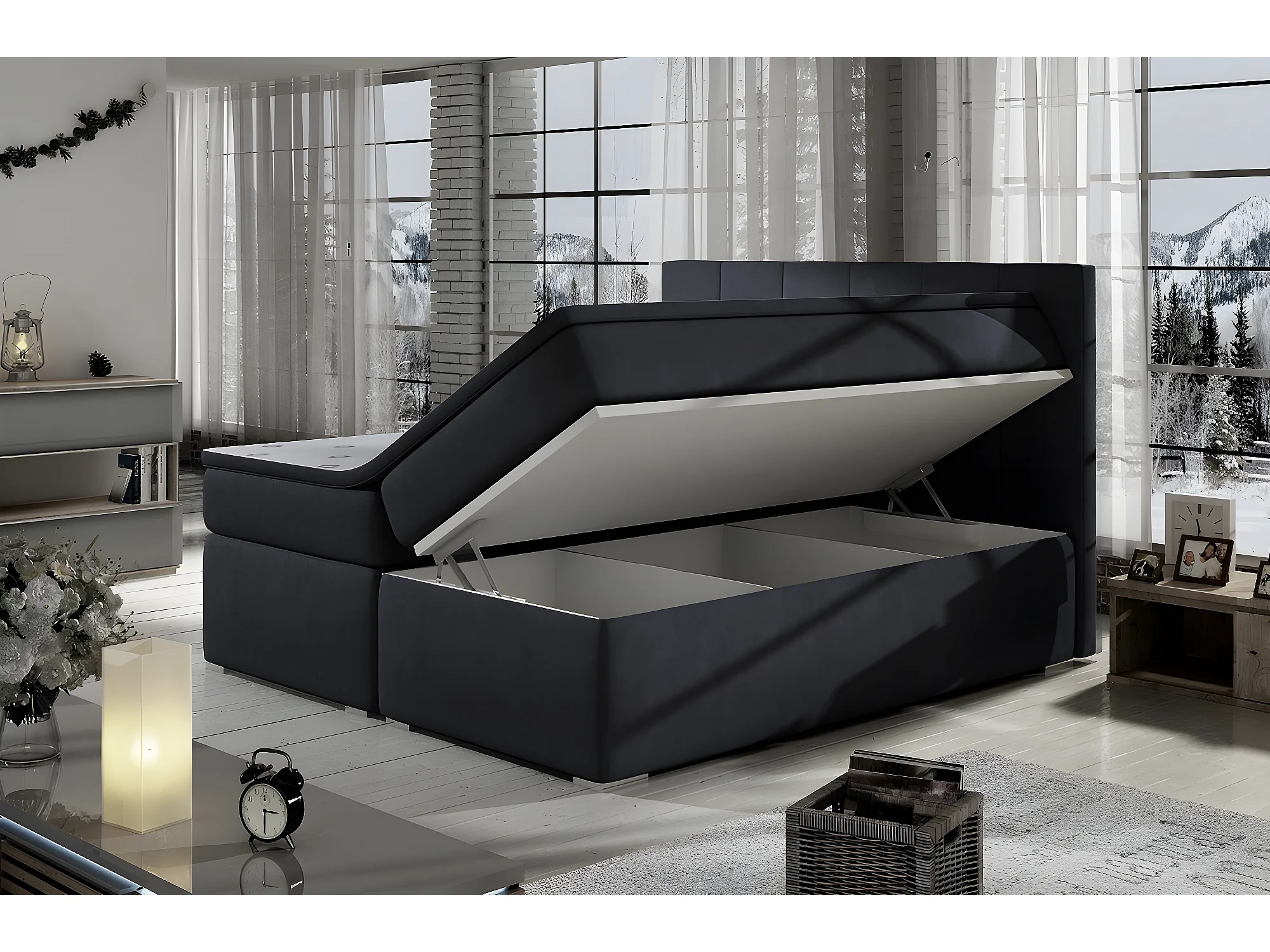 Ensemble boxspring complet tête de lit + sommiers + matelas + surmatelas BORIS de VENESETTI - simili cuir noir - 180x200 cm