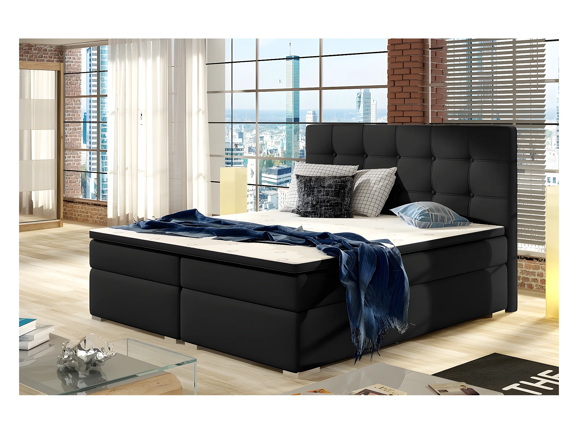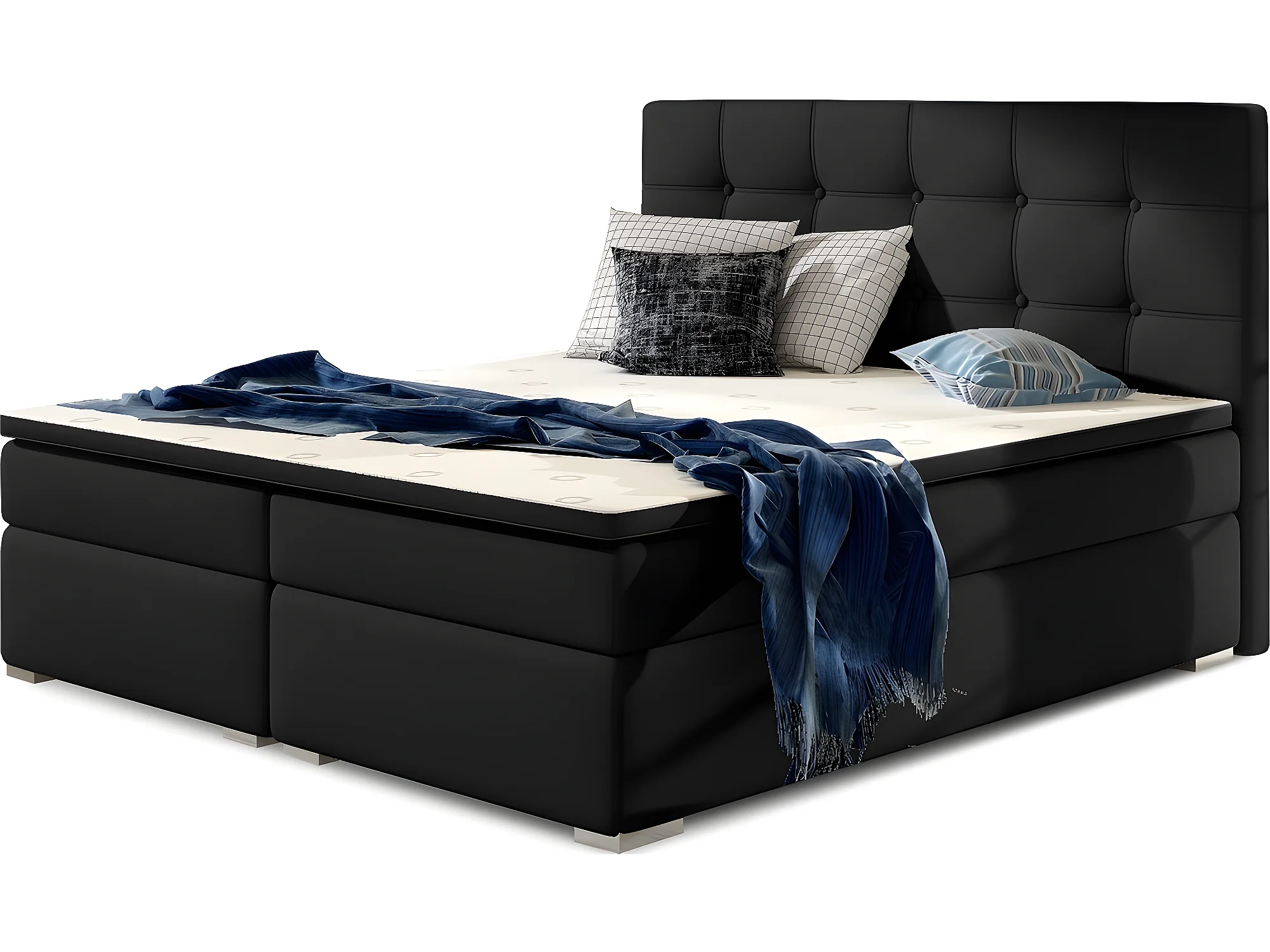 Ensemble boxspring complet tête de lit + sommiers + matelas + surmatelas INAYA de VENESETTI - simili cuir noir - 160x200 cm