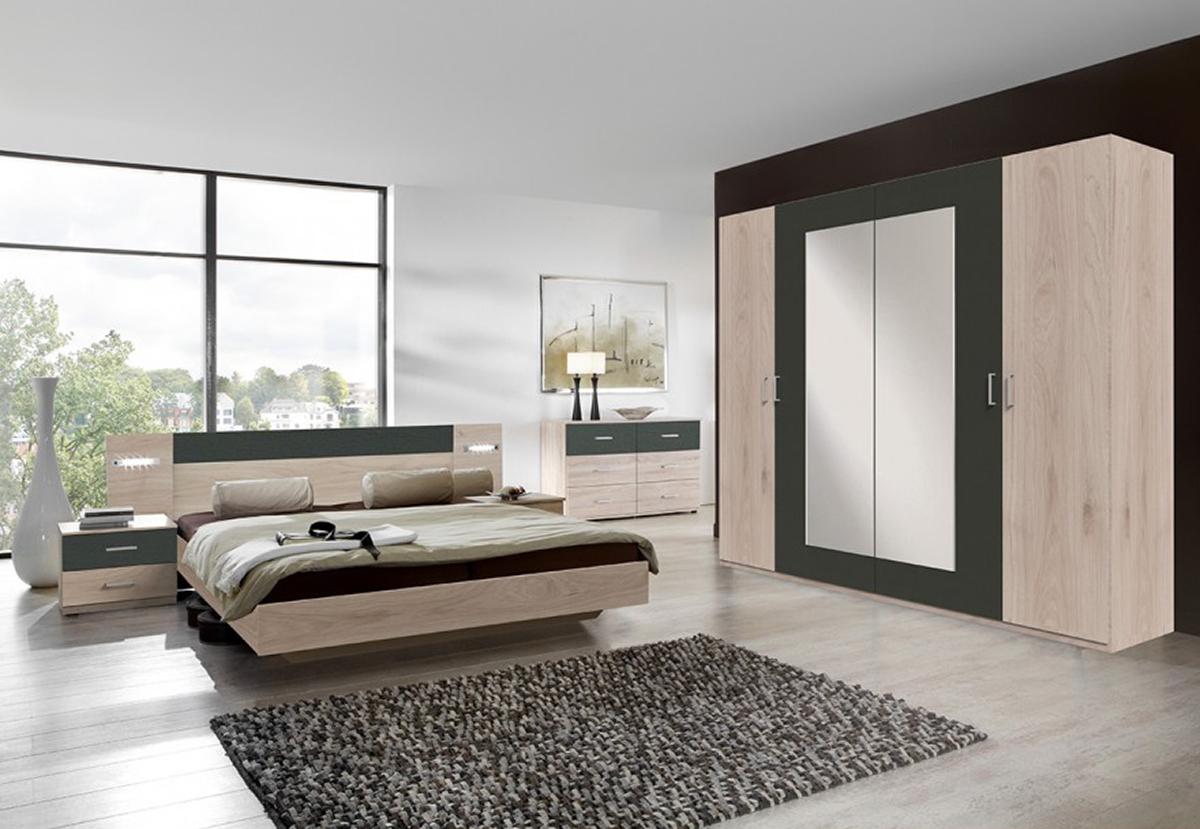 Ensemble chambre adulte coloris Imitation chêne, graphite - 160x200 cm