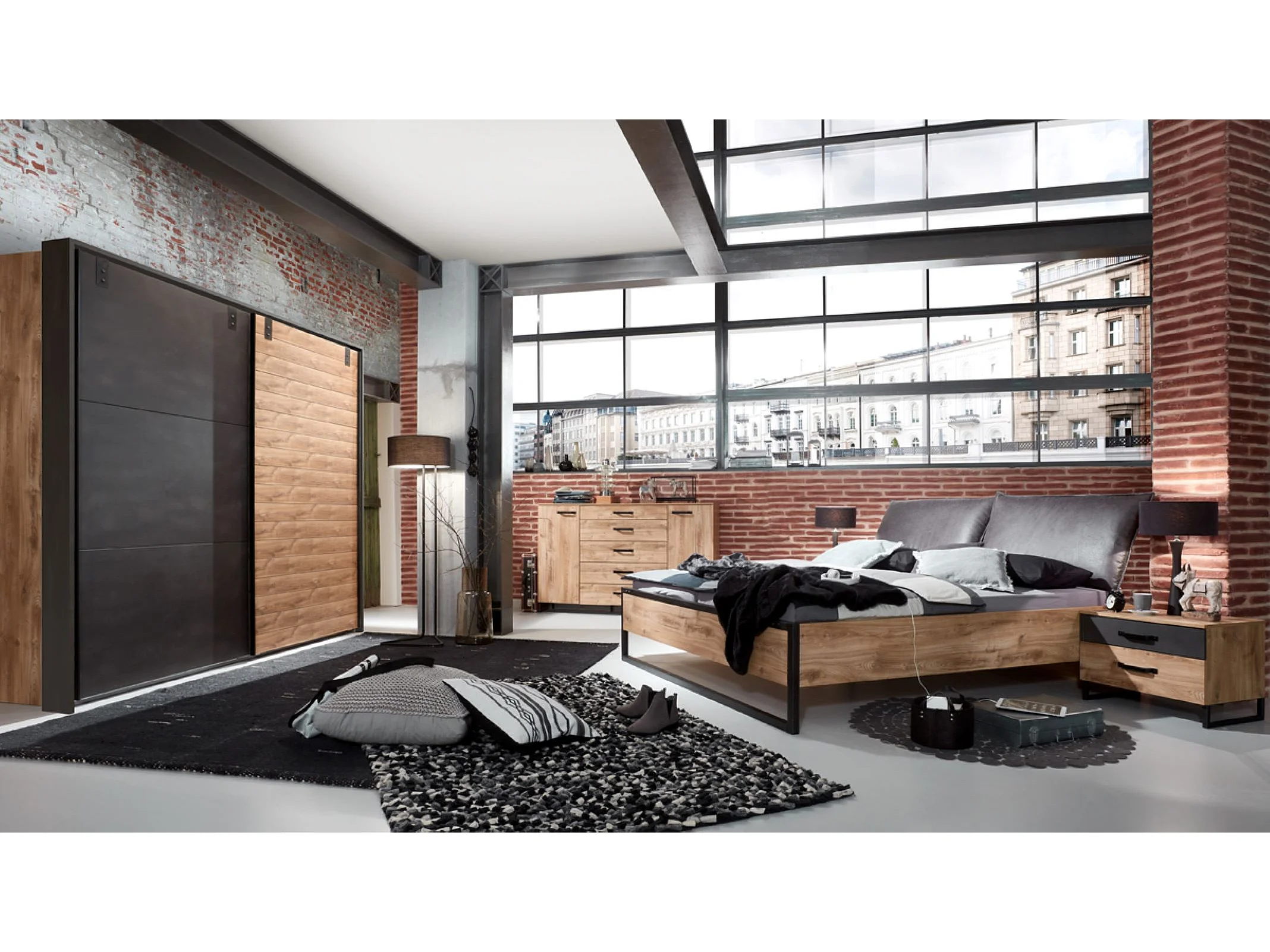 Ensemble chambre adulte complète Imitation chêne poutre rechampis raw steel - 180 x 200 cm