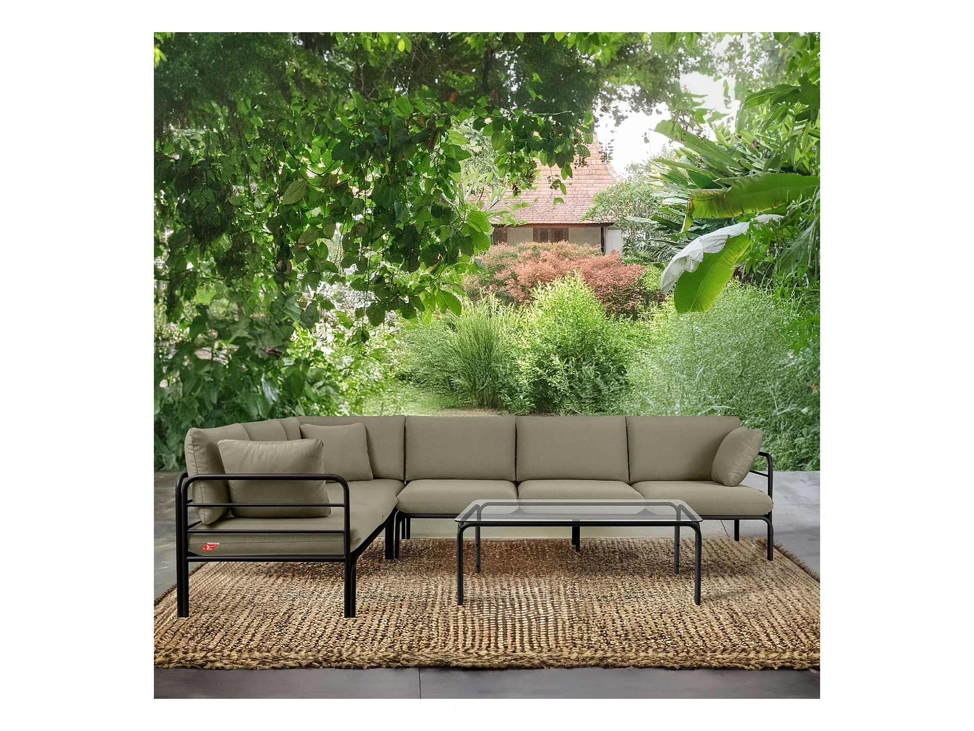 Ensemble d'angle de jardin RAMBE anthracite et beige, dimensions 304x80x229 cm, style élégant