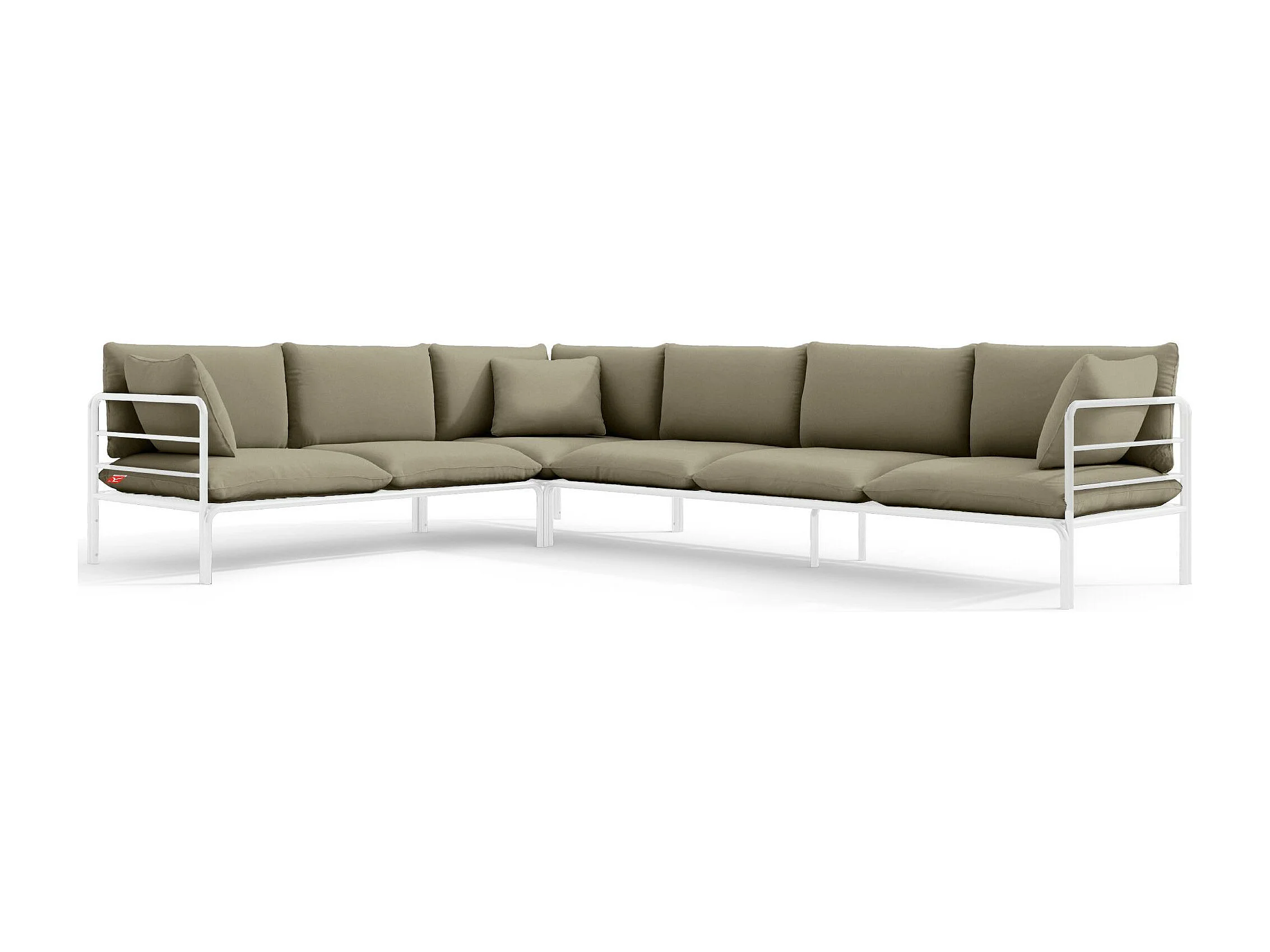 Ensemble d'angle de jardin RAMBE blanc et beige, dimensions 304x80x229 cm, idéal pour extérieur